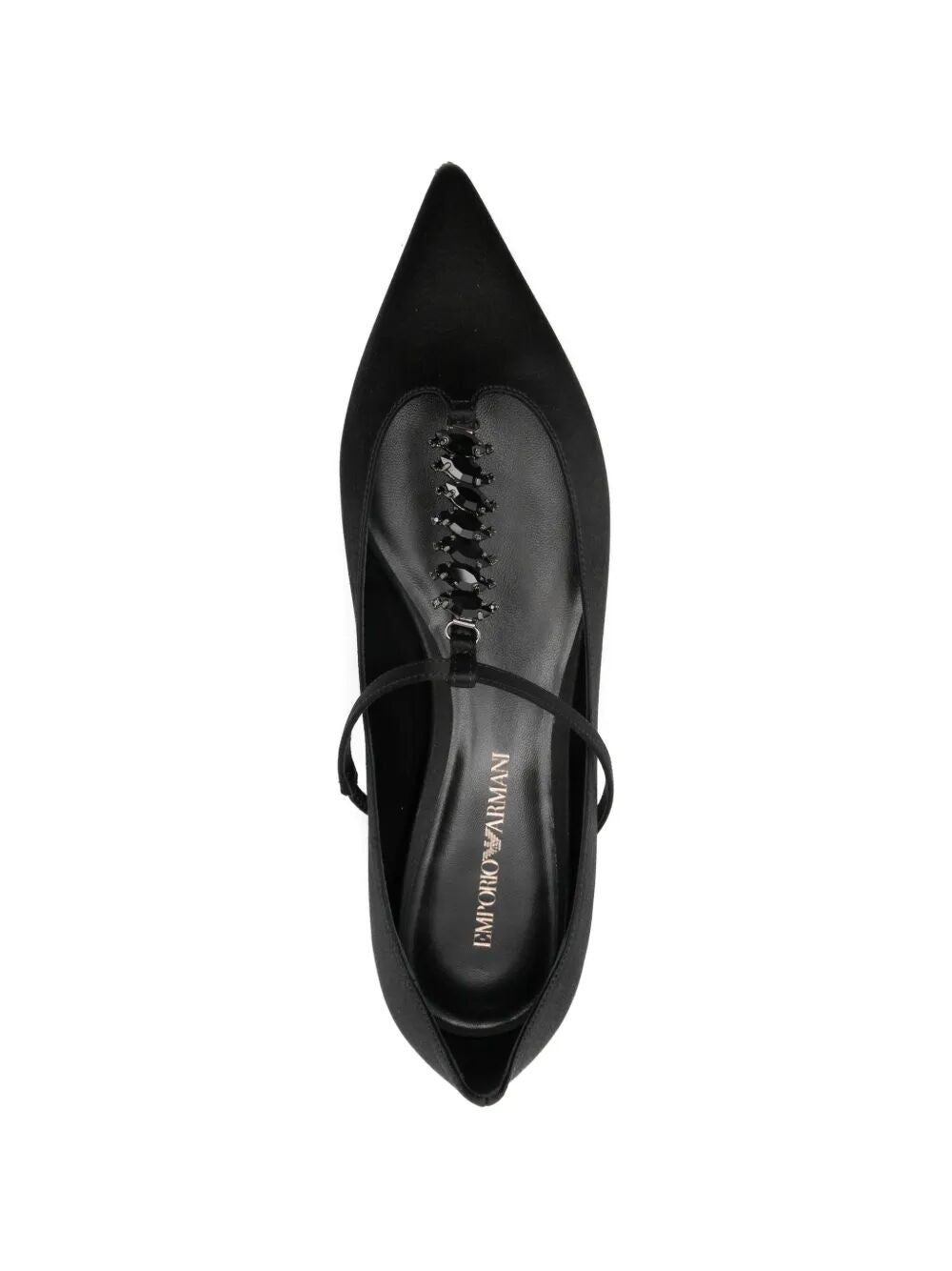 Elevate your everyday style with these sophisticated ballet flats from Emporio Armani. Crafted from luxurious 100% calf leather, these sleek flats feature a modern pointed toe and an elegant decorative strap detail that adds a refined touch to the classic silhouette.