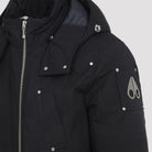 BLACK COTTON AND NYLON JACKET. FEATURES A REMOVABLE DRAWSTRING HOOD, FRONT ZIP CLOSURE, FOUR FRONT POCKETS, APPLIED LOGO ON THE SLEEVE, AND ELASTICATED HEM AND CUFFS. LINED WITH RECYCLED NYLON, AND INCLUDES A REMOVABLE BLACK FAUX FUR TRIM FOR THE HOOD.