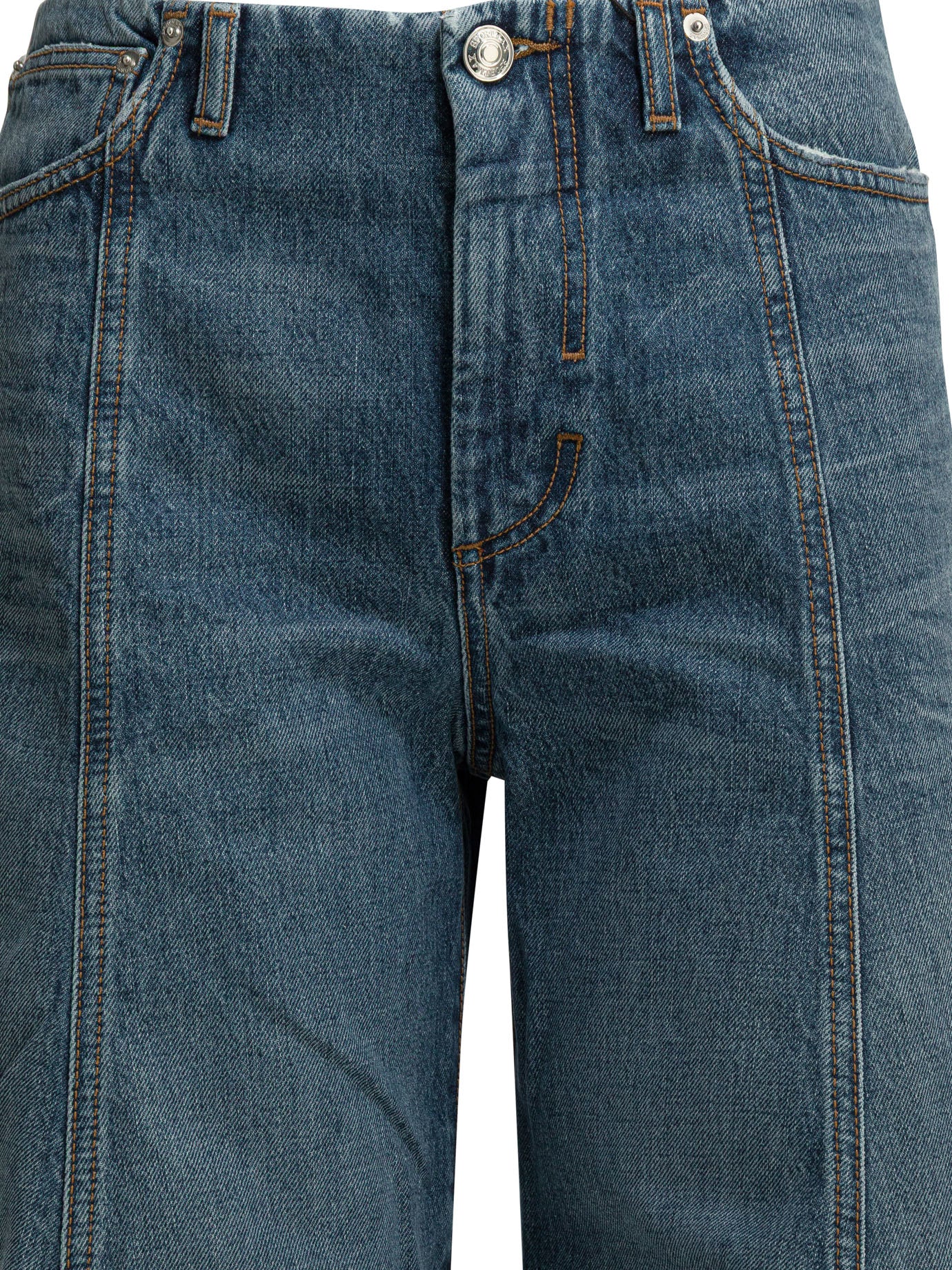 Crafted in a rich medium-blue wash with striking seam details running down the front, these high-waisted jeans create a flattering and fashion-forward look. The dramatic wide leg tapers slightly at the ankle for a modern, architectural silhouette that pairs beautifully with everything from sleek boots to minimalist sneakers.