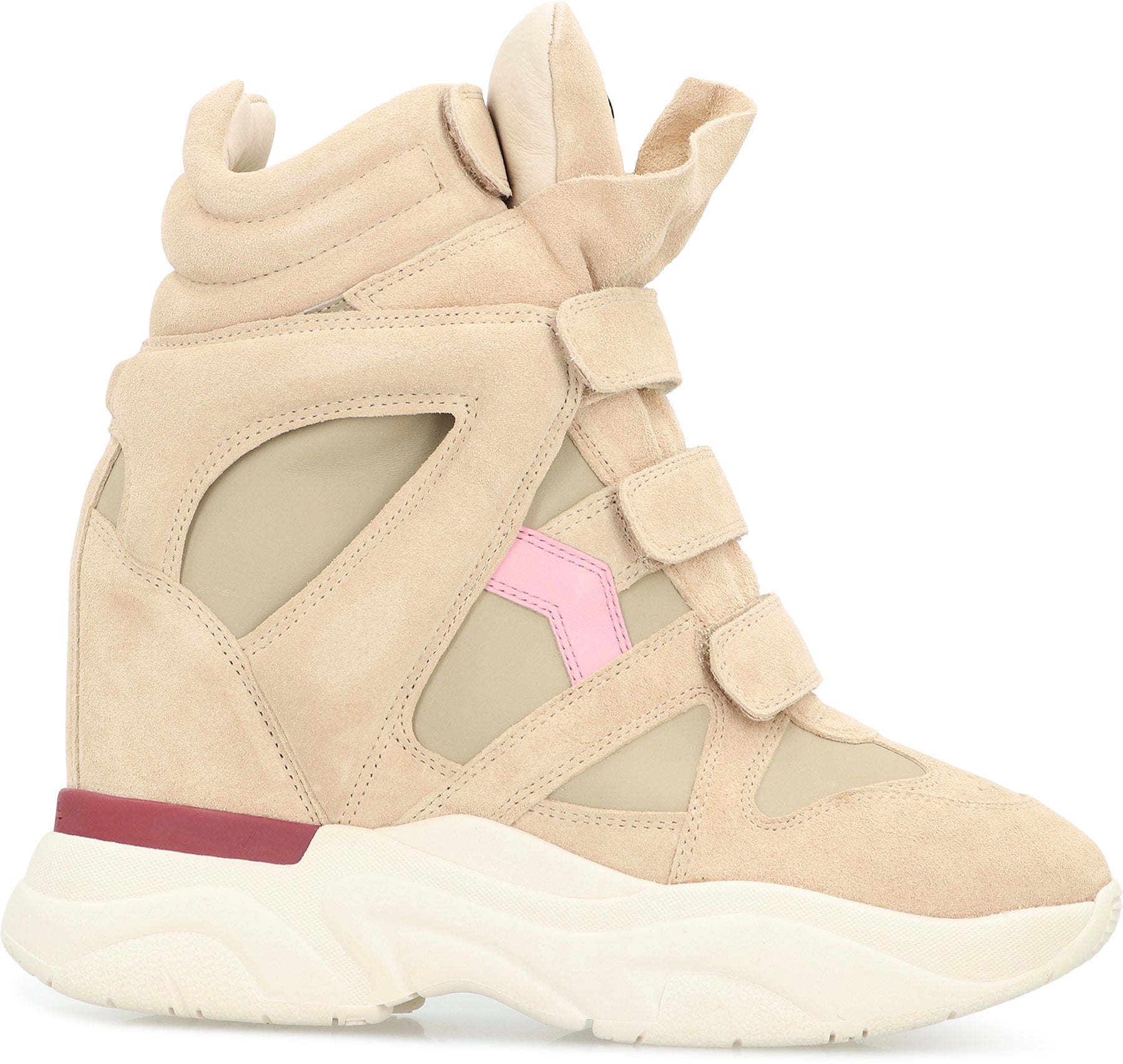 HIGH-TOP SNEAKERS WITH WEDGE IN SUEDE AND SOFT CONTRASTING LEATHER. FEATURES A CLOSURE SYSTEM WITH VELCRO STRAPS, ALLOWING FOR EXCELLENT ADJUSTMENT, ENSURING COMFORT AND SUPPORT. THE SOLE OFFERS GOOD TRACTION, IDEAL FOR VARIOUS OCCASIONS. PERFECT FOR A CASUAL AND URBAN LOOK.