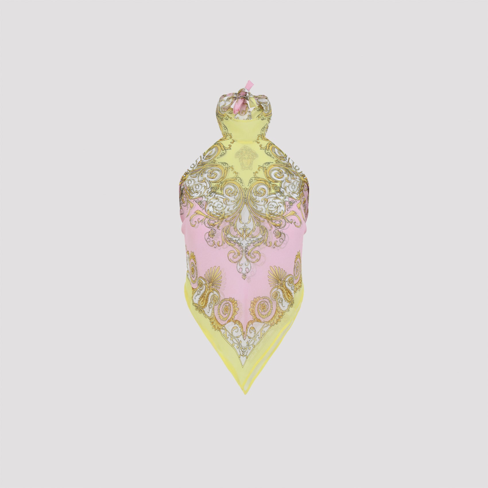 Elevate your accessory collection with this stunning Barocco Print scarf from Versace. Featuring the house's iconic baroque-inspired motif in a beautiful palette of soft pink and vibrant yellow-green, this luxurious piece showcases the ornate scrollwork and regal detailing that Versace is renowned for.
