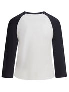 Elevate your casual wardrobe with this playful baseball-style graphic tee from Ganni. Featuring contrasting raglan sleeves and a cheerful "Have a nice day!" message, this long-sleeved top brings effortless cool to your everyday rotation.