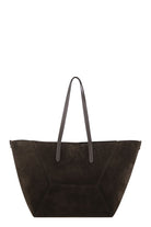 THE BC DUO SUEDE BAG INTERPRETS THE CLASSIC "EVERYDAY BAG" IN PURE BRUNELLO CUCINELLI STYLE. THE SUEDE, SOFT AND COMPACT, ENRICHES THE GEOMETRIC SILHOUETTE HIGHLIGHTED BY CONSPICUOUS STITCHING THAT EMPHASISES THE SQUARE AND MINIMAL LINES. A REMOVABLE INTERNAL ZIPPED CLUTCH AND PRACTICAL MAGNET CLOSURE COMPLETE THE MODEL, WHILE TWO JEWEL EMBROIDERIES ADD A FEMININE TOUCH OF LIGHT. THE INTERNAL SIDE TIES, WHEN HOOKED, ALLOW YOU TO CHANGE THE SHAPE OF THE BAG AND MAKE IT MORE COMPACT. THE FINE SUEDE IS A COMPACT LEATHER WITH A SOFT, VELVETY TEXTURE. THE LEATHER LINING COMPLETES THE BAG'S AESTHETIC. - MAGNET CLOSURE - DOUBLE HANDLE - REMOVABLE INTERIOR ZIP POUCH - NICKEL-FREE JEWEL DECORATION DESIGNER ID: MBDLD2571 C7284 W 31 X H 28 X D 22 CM INNER POUCH 22.5 X 14.5 CM