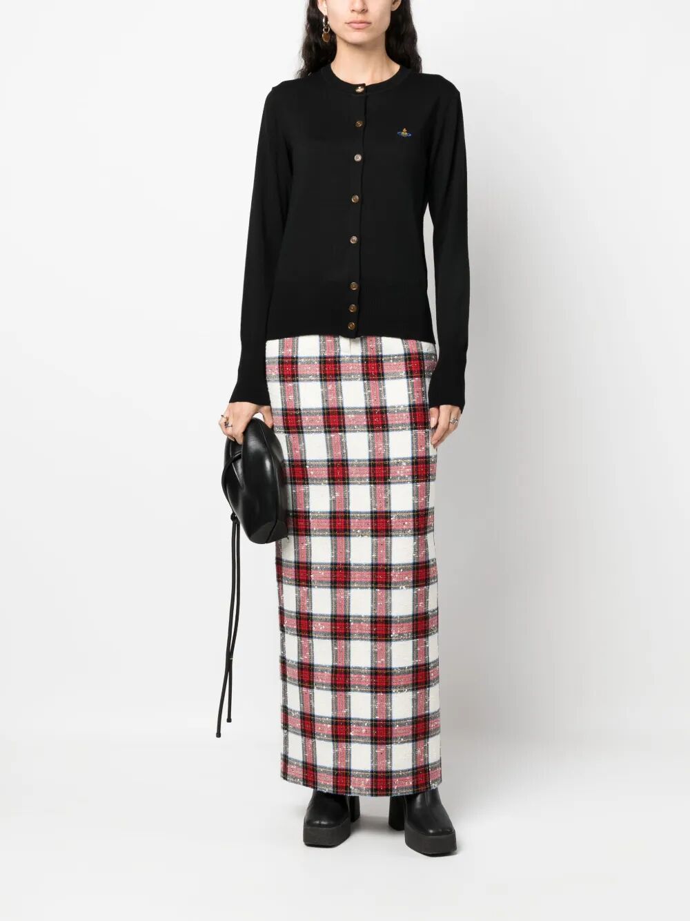 Elevate your wardrobe with the BEA Wool Cardigan from Vivienne Westwood. This sophisticated black wool cardigan features elegant button-front closure and long sleeves, making it a versatile piece for any fashion-forward woman.