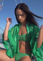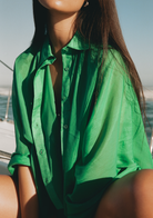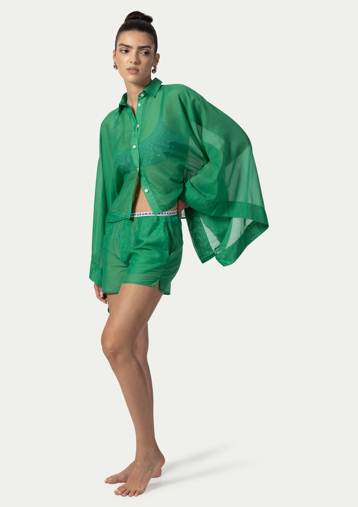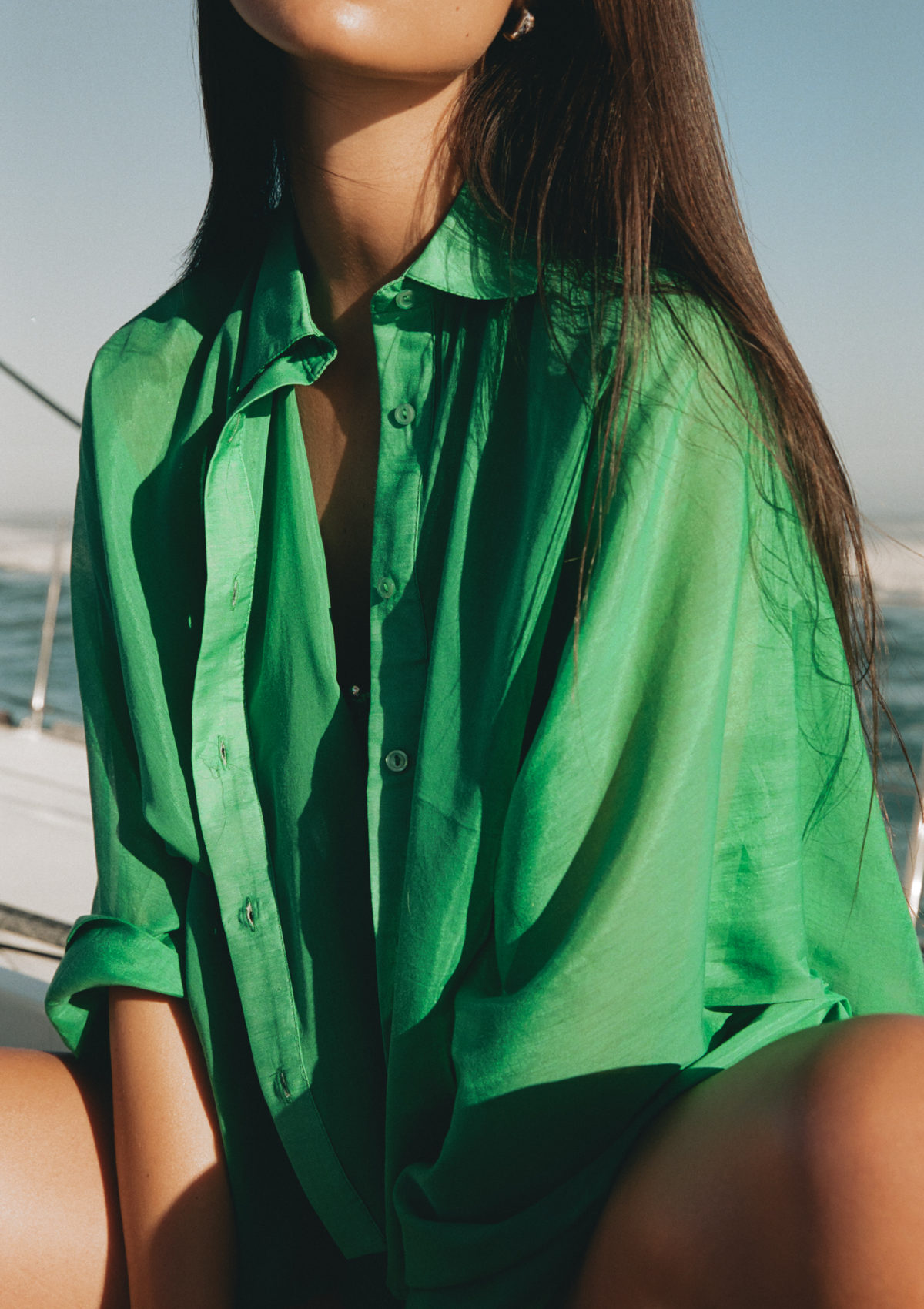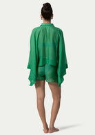 PARAMIDONNA's MARINA kimono is crafted from a luxurious blend of silk and cotton, offering both elegance and comfort. Available in sizes XS/S and M/L, its light and sheer fabric drapes effortlessly, creating a graceful silhouette. The wide, flowing sleeves bring a relaxed, casual vibe, while the collared neckline adds a sophisticated touch. With its easy front button closure, the kimono can be styled open or closed, offering versatile options for a chic beach or resort look.
