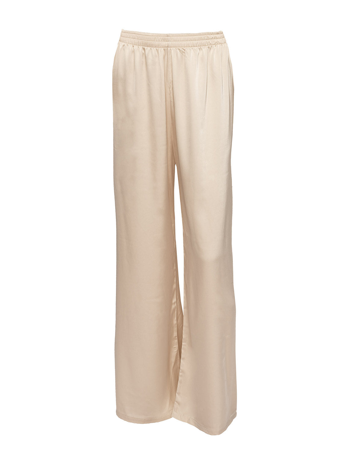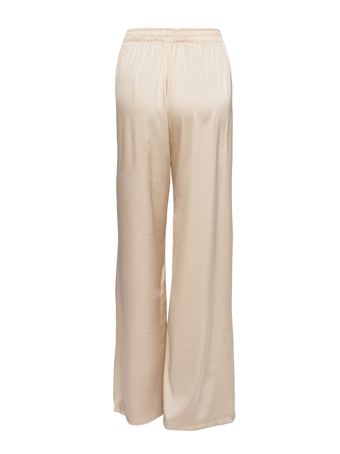 Wide leg beige pants by PARAMIDONNA. The beach trousers are made of super soft satin fabric. It is elastic high waist and straight leg design which gives you an elegant silhouette. They are perfect to wear out on walks, beach party or lounge around the house in style. You can easily style it in spring or summer. For a stylish look, combine the wide-legged beach trousers with out swimsuit collection or with a matching beach shirt SAFARA. We recommend gently handwashing this item with warm water and soap, following the instructions on the care tag.