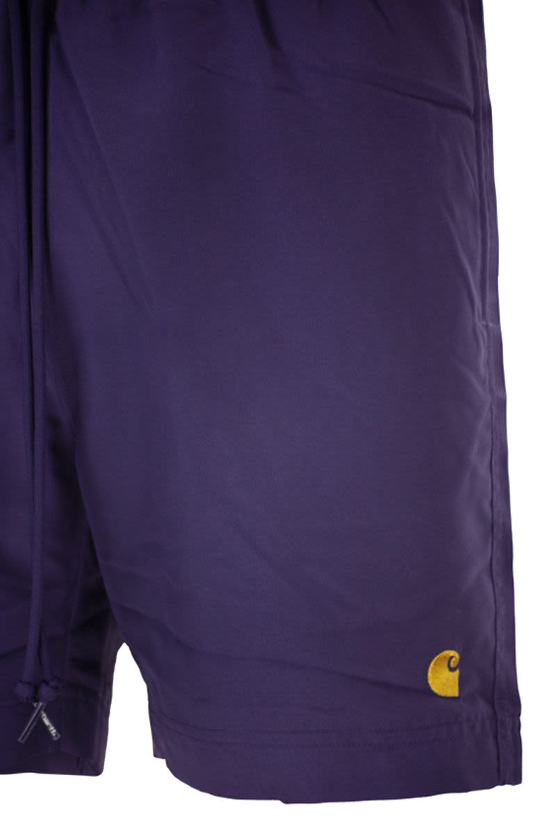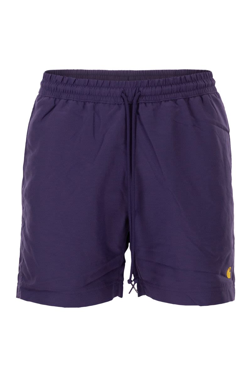 THE CHASE SWIM TRUNKS ARE MADE FROM LIGHTWEIGHT POLYESTER FABRIC WITH WATERPROOF AND QUICK-DRYING PROPERTIES. THEY ALSO FEATURE AN INNER MESH LINING. THE SWIM SHORTS HAVE TWO SIDE POCKETS INSERTED INTO THE SEAMS AND A BACK POCKET WITH A KEY RING. THE LEFT LEG FEATURES AN EMBROIDERED “C” LOGO. - WATERPROOF - MESH LINING - SIDE POCKETS WITH STITCHING - BACK POCKET WITH KEY RING - EMBROIDERED “C” LOGO DESIGNER ID: I035062 3RKXX