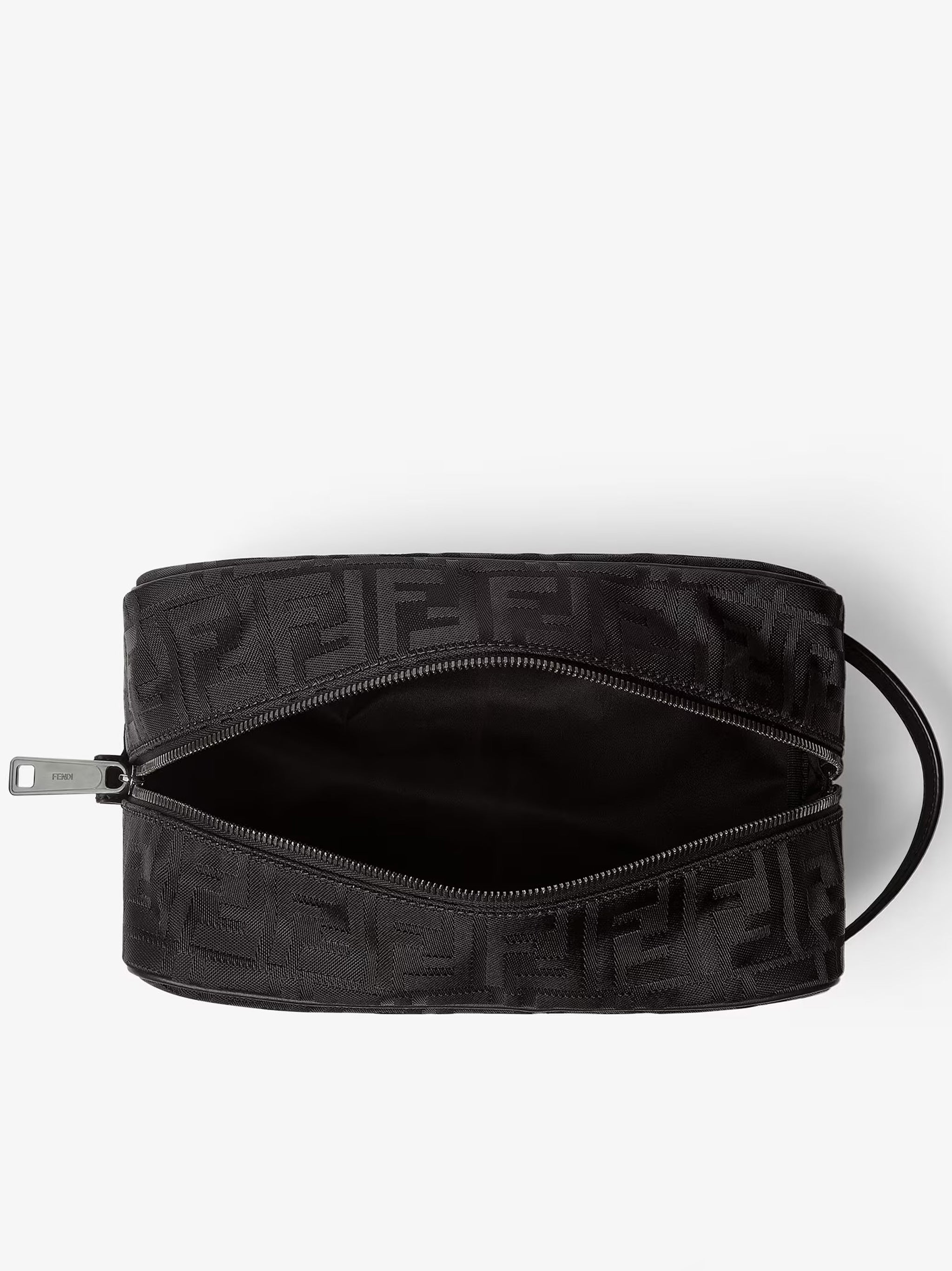 Measuring 27.5cm x 16cm x 13cm, this versatile beauty case features a convenient side handle for easy carrying. The timeless black colorway and signature Fendi FF pattern make this an investment piece that will elevate your travel accessories collection for years to come.