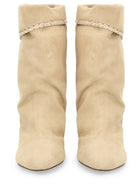 Elevate your footwear collection with these stunning beige calf leather boots from Isabel Marant. Crafted from 100% premium calf leather in Portugal, these mid-calf boots feature a sophisticated cone heel and a distinctive fold-over cuff adorned with intricate braided trim and tassel detailing.