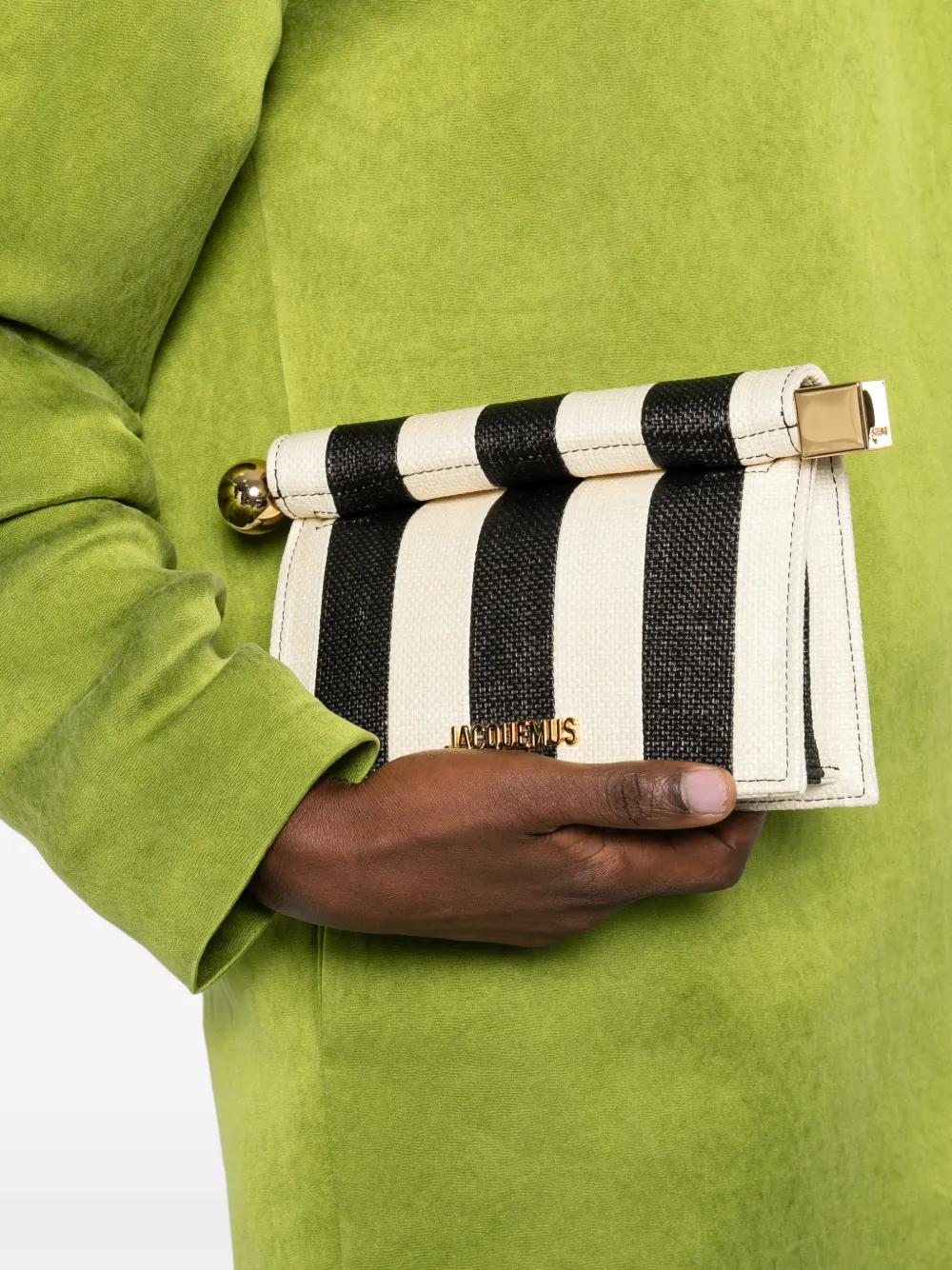 Elevate your everyday style with this chic Beige Cotton Shoulder Bag from Jacquemus. Crafted from 100% cotton and made in Italy, this sophisticated accessory features bold black and cream stripes that create a timeless, nautical-inspired aesthetic.