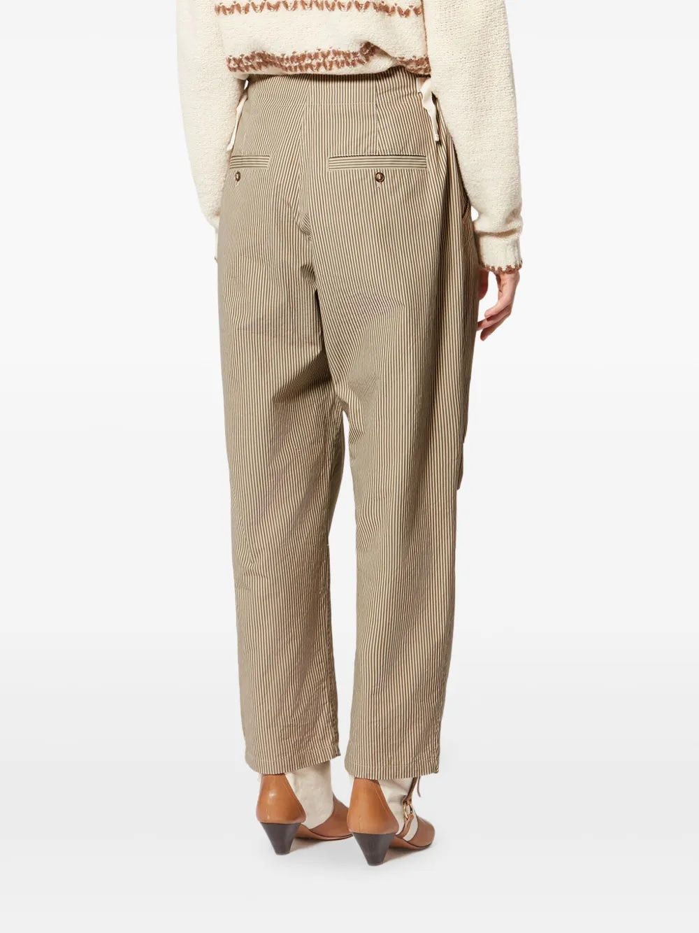 Elevate your casual wardrobe with these luxurious beige khaki cotton pants from Isabel Marant. Crafted from soft, textured corduroy fabric, these relaxed-fit pants feature a comfortable drawstring waist and practical front pockets for effortless everyday style.