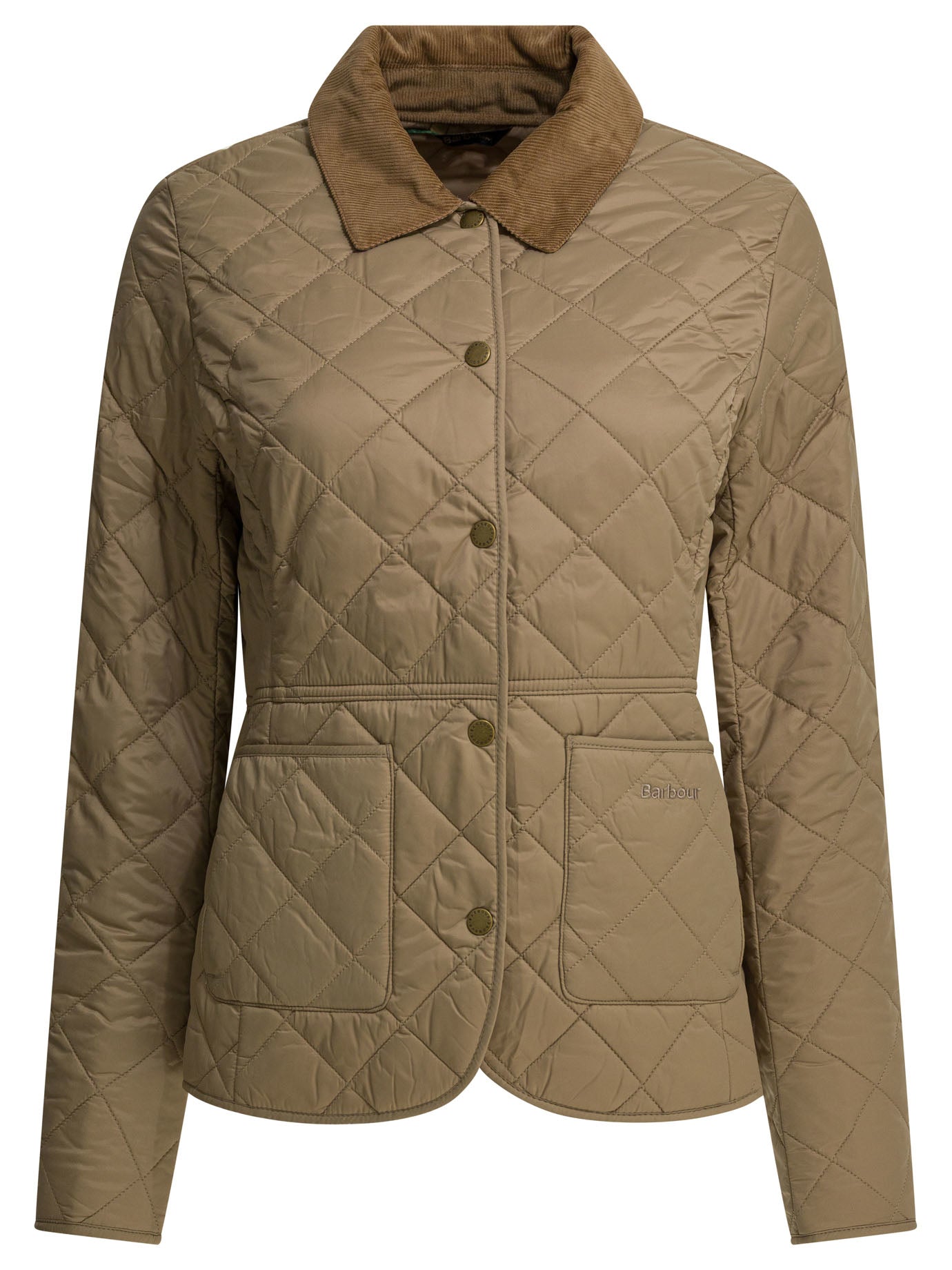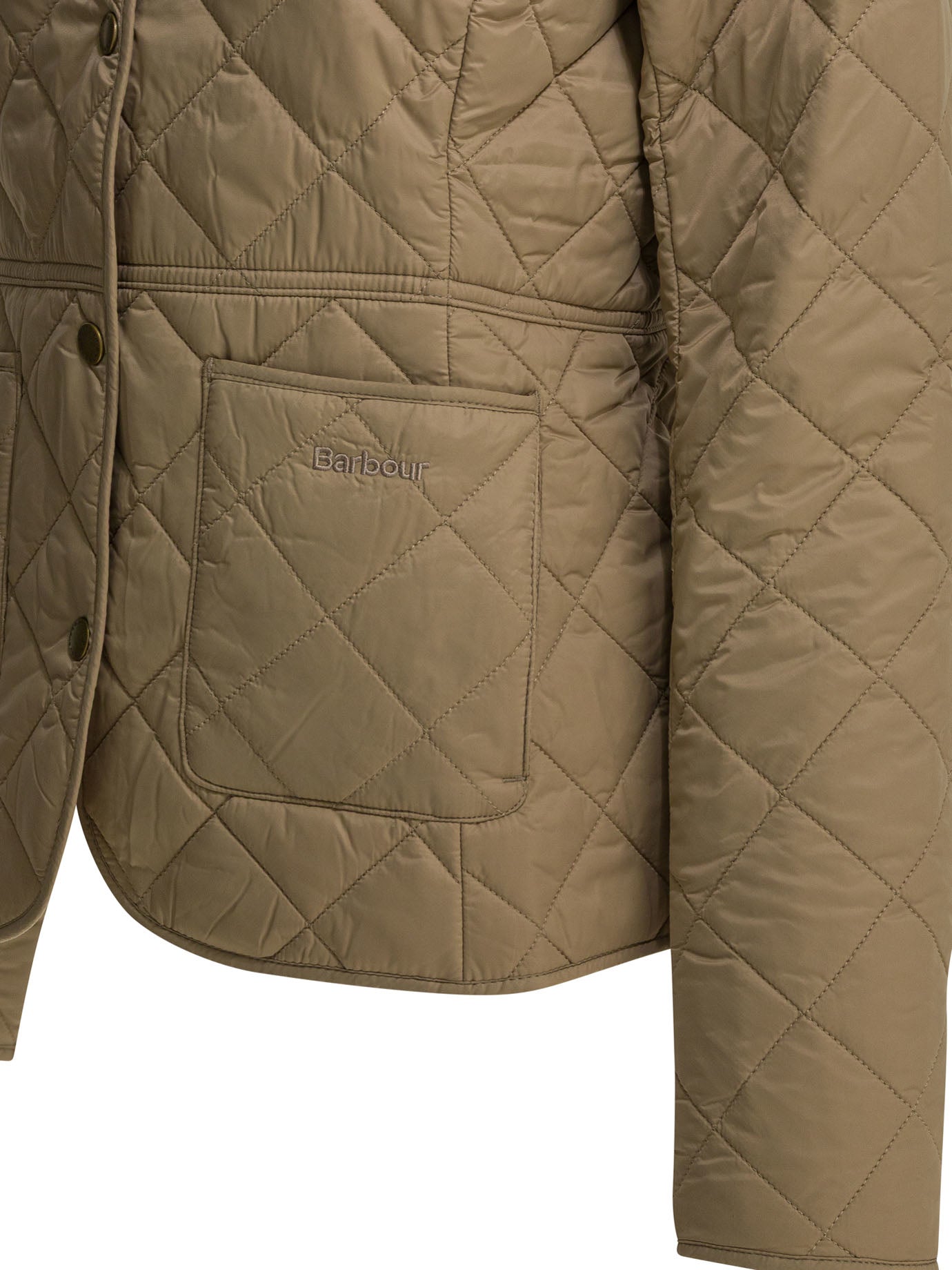 Elevate your everyday wardrobe with this sophisticated beige quilted jacket from Barbour. Crafted from premium polyamide, this versatile piece features an elegant diamond quilting pattern and a flattering fitted silhouette that cinches at the waist.