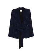 Elevate your wardrobe with this stunning belted jacket from Forte Forte. Featuring a beautiful blue floral print, this single-breasted blazer combines sophisticated tailoring with feminine charm.