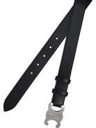 Elevate your everyday style with this sophisticated belt from Celine. Crafted from premium black leather with a 30mm width, this versatile accessory features a distinctive silver-tone buckle that adds a touch of modern elegance to any ensemble.