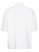WHITE SHIRT, SHORT SLEEVES, JEWEL BUTTON CLOSURE, STRAIGHT HEM.