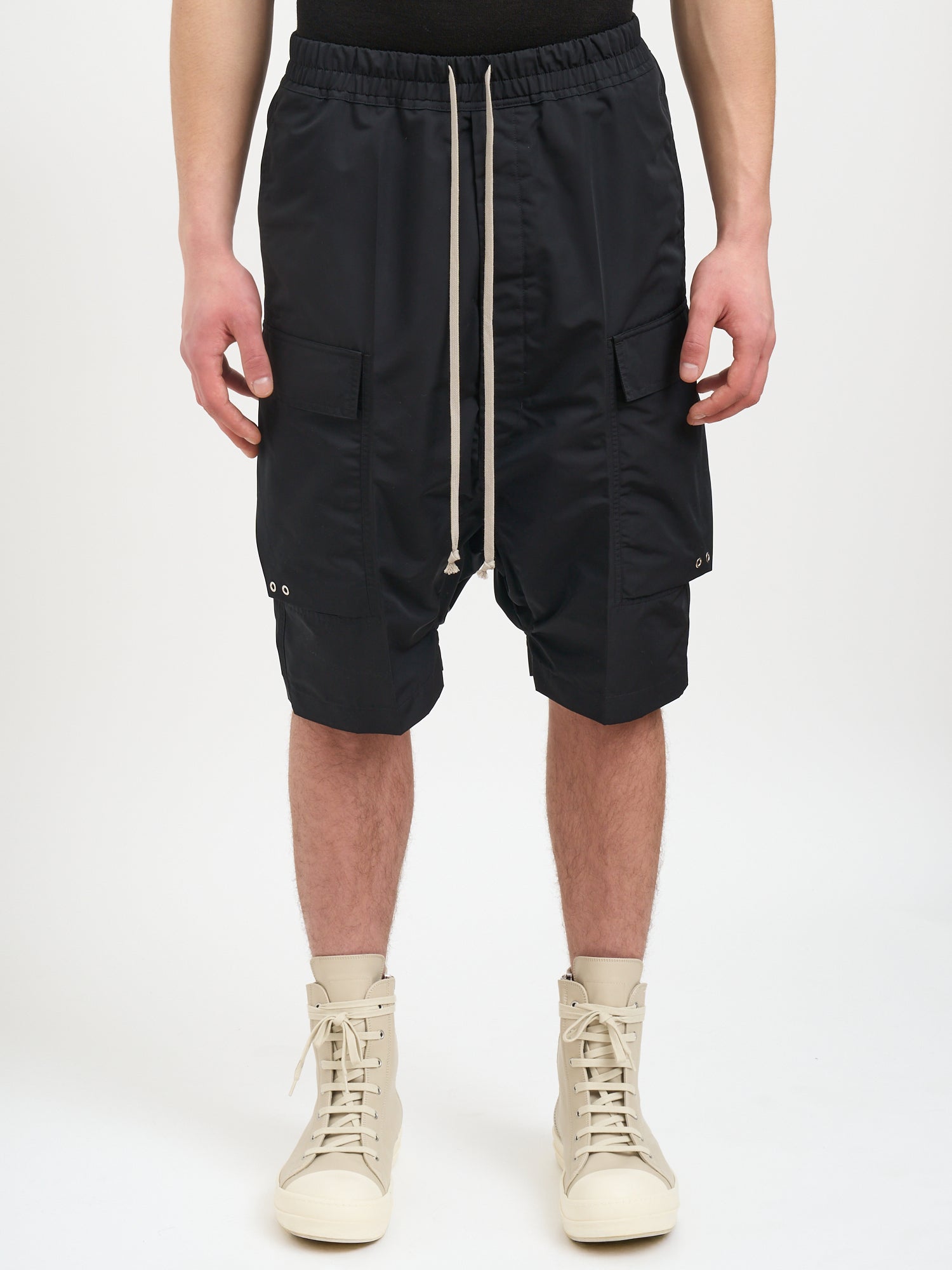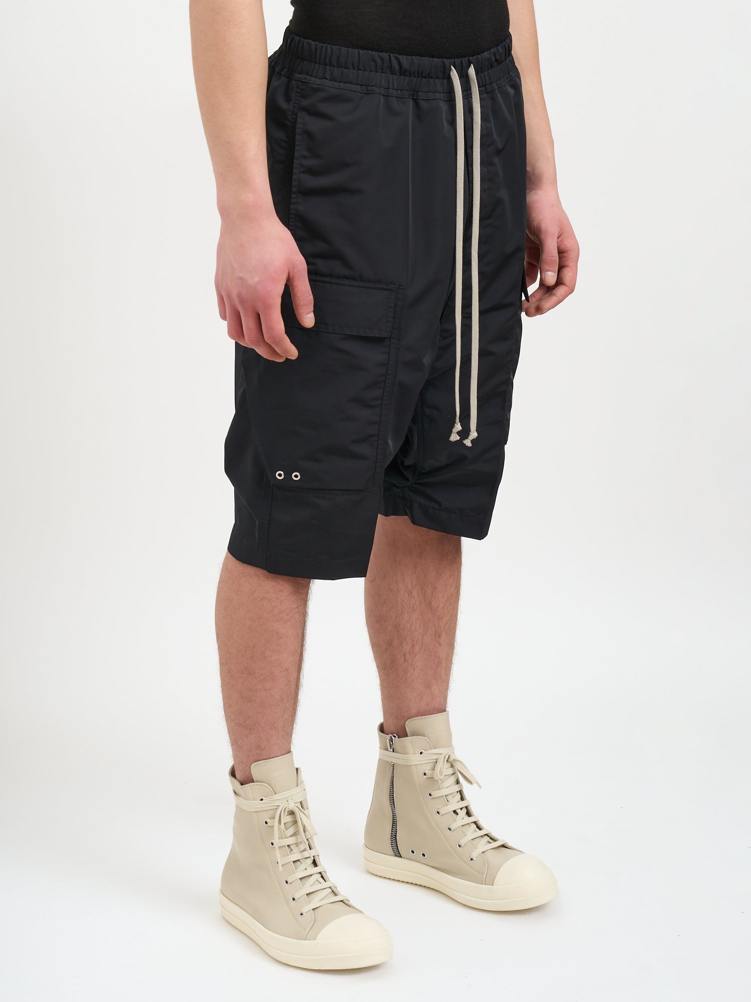 The elasticated waist with drawstring closure ensures a comfortable, adjustable fit, while the bermuda length offers versatile styling options. Perfect for off-duty days and casual outings, these shorts embody Rick Owens' avant-garde aesthetic with their architectural design and utilitarian details.