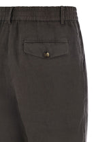 THE COMBINATION OF A CLASSICALLY INSPIRED CONSTRUCTION AND THE LIGHT TOUCH OF DéLAVé LINEN CANVAS LENDS THE BERMUDA SHORTS A RELAXED ELEGANCE. MADE OF PURE LINEN FIBRES, THE FABRIC IS CHARACTERISED BY A DISTINCTIVE DENIM EFFECT AND A SLIGHTLY IRREGULAR TEXTURE. THE COMFORTABLE FIT IS INSPIRED BY SPORTSWEAR. WASHED LINEN IS A LIGHTWEIGHT FABRIC, CHARACTERISED BY A DRY HAND AND THE UNMISTAKABLE SLIGHTLY IRREGULAR THICKNESS OF THE NATURAL FIBRE. THE DéLAVé FINISH ENHANCES THE SEASON'S NUANCES WITH A SUBTLE NUANCED EFFECT. - ZIP FASTENING WITH BUTTON - AMERICAN’ FRONT POCKETS - ELASTICATED WAISTBAND - DARTS - BACK WELT POCKETS WITH FLAP AND BUTTON DESIGNER ID: M243DU0065 C6015