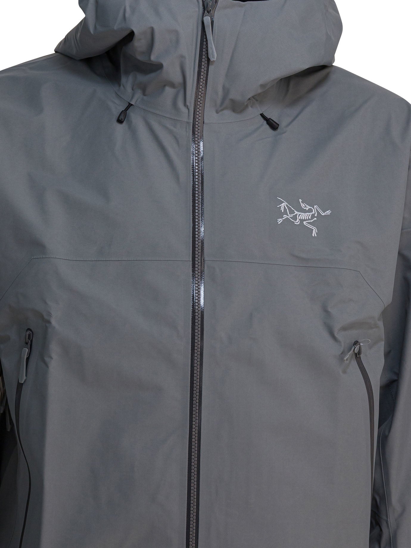Arc'teryx "Beta SL" jacket with three-layer construction, made of GORE-TEX ePE fabric laminated to a bio-based nylon base. The construction is designed to withstand variable weather conditions while maintaining light weight and compressibility. The surface is treated with FC0-DWR water-repellent finish. The helmet-compatible StormHood provides coverage without obstructing the view. The silhouette features sleek lines and regular volume.
