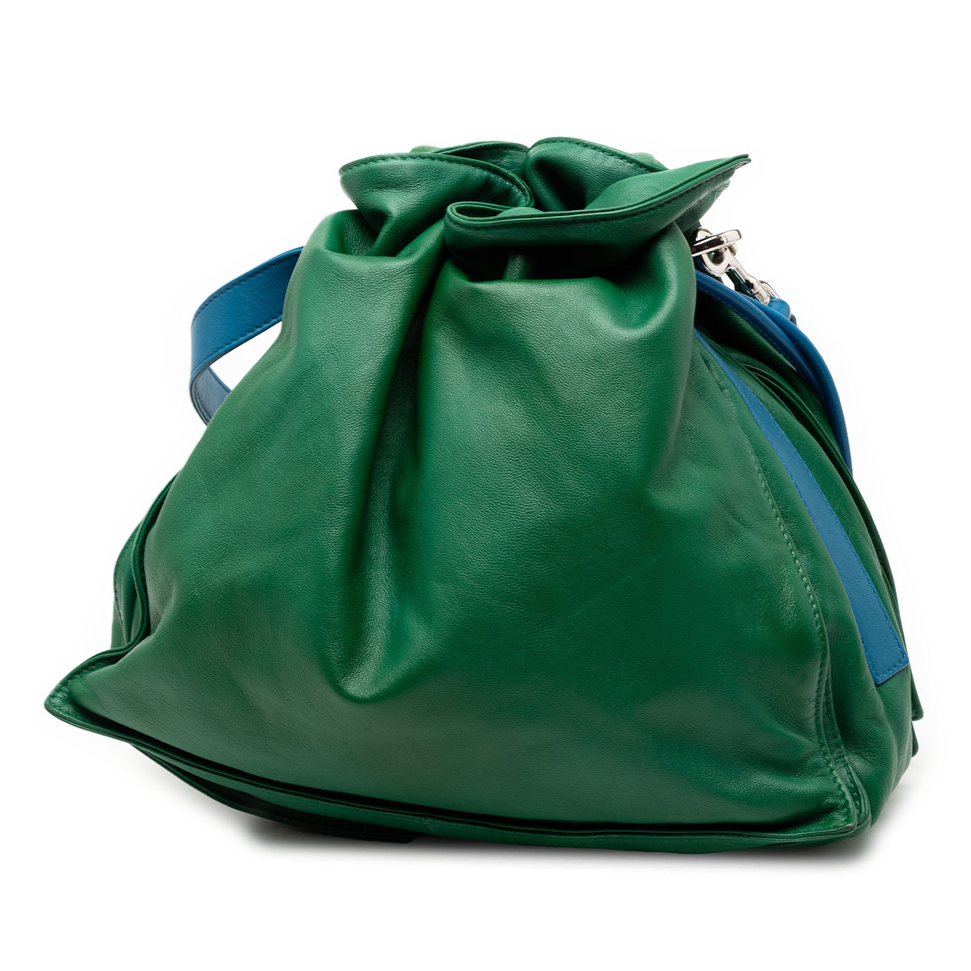 The practical flat leather strap allows for comfortable crossbody wear, while the top snap closure keeps your essentials secure. Inside, you'll find a convenient zip pocket for organizing your valuables. The unique drawstring-inspired silhouette makes this piece instantly recognizable as a LOEWE signature.