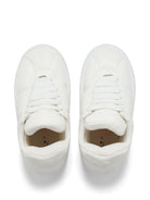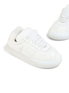 WHITE LEATHER PADDED DESIGN LOGO-EMBOSSED TONGUE BRANDED HEEL COUNTER ROUND TOE FRONT LACE-UP FASTENING BRANDED LEATHER INSOLE FLAT RUBBER SOLE