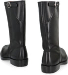 BLACK LEATHER BOOTS, CHARACTERIZED BY A SOBER AND ELEGANT DESIGN. THE HIGH STRUCTURE OFFERS EXCELLENT ANKLE SUPPORT, WHILE THE STURDY SOLE ENSURES COMFORT AND STABILITY. THESE BOOTS FEATURE REFINED DETAILS, SUCH AS A SIDE BUCKLE. IDEAL FOR A CASUAL LOOK OR FOR MORE FORMAL OCCASIONS, THEY ADD A TOUCH OF STYLE TO ANY OUTFIT.