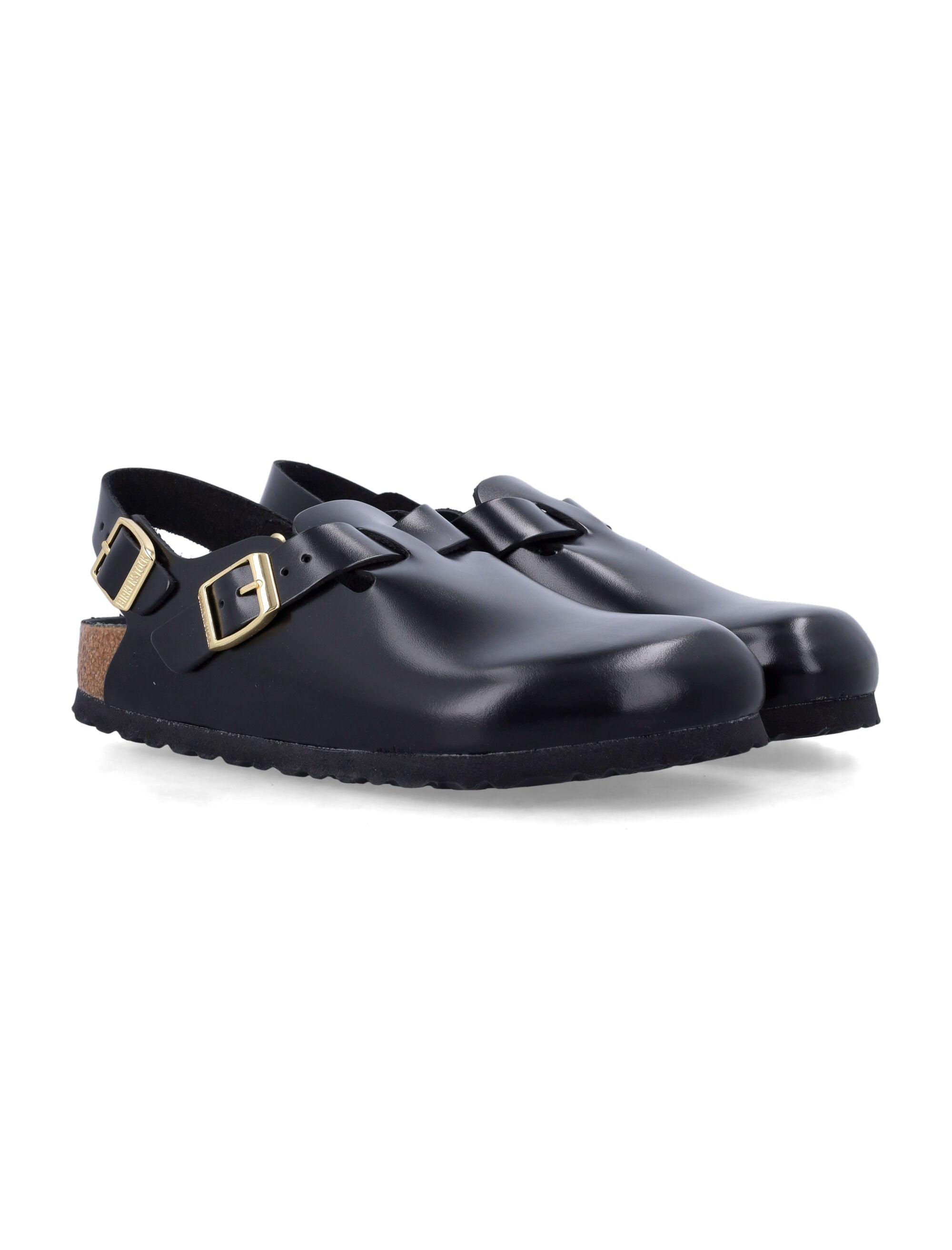 BIRKENSTOCK BLACK TOKIO II NATIRAL LEATHER CLOGS
