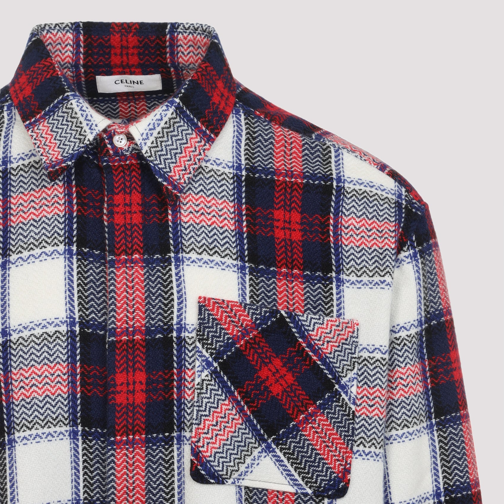 Elevate your everyday wardrobe with this luxurious Black and Red Cashmere Overshirt from Celine. Crafted from premium checkered cashmere, this sophisticated piece features a pointed collar, concealed button fastening for a sleek finish, and long sleeves with buttoned cuffs. The back yoke and straight hem create a relaxed yet refined silhouette that's perfect for layering. Style this versatile overshirt over a simple tee and denim for an effortlessly chic off-duty look, or layer it over a turtleneck with tailored trousers for a polished ensemble. The timeless checkered pattern in classic black and red adds a touch of heritage charm while the luxurious cashmere ensures unparalleled comfort and warmth. This is the ultimate investment piece that seamlessly transitions from casual weekends to sophisticated workwear.