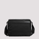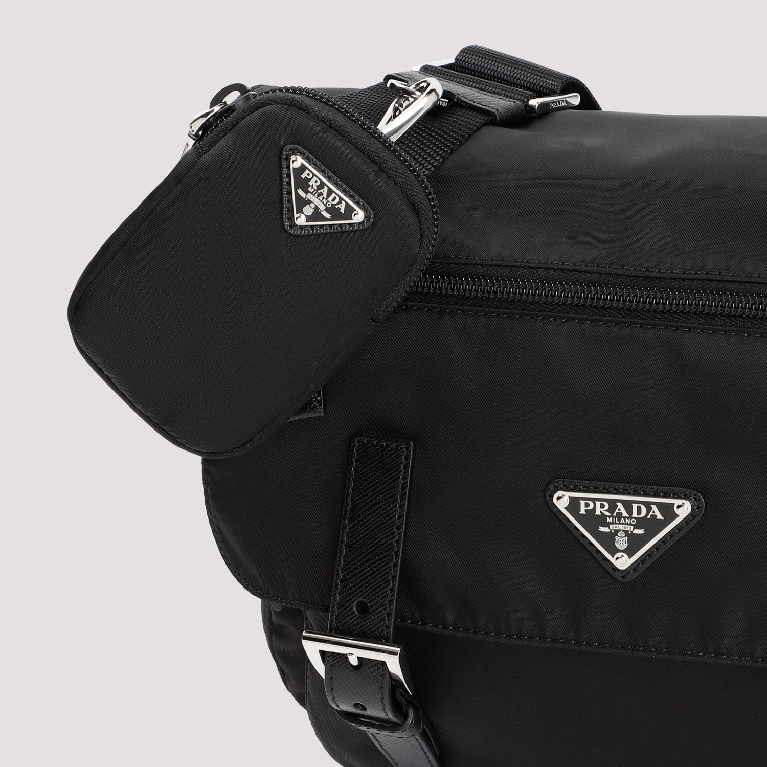 PRADA BLACK BAG. PURE BLACK POLYAMIDE FABRIC, FRONT FLAP FASTENING WITH METALLIC BUCKLES, FRONT SIGNATURE TRIANGLE LOGO, ZIPPED POCKET ON THE TOP, ADJUSTABLE STRAP, EXTERNAL POCKET, TOP ZIPPED FASTENING, ONE MAIN COMPARTMENT.