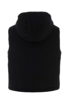 This luxurious Gucci reversible sleeveless bomber jacket is crafted from premium black bouclé wool, offering versatility and sophistication in one stunning piece.