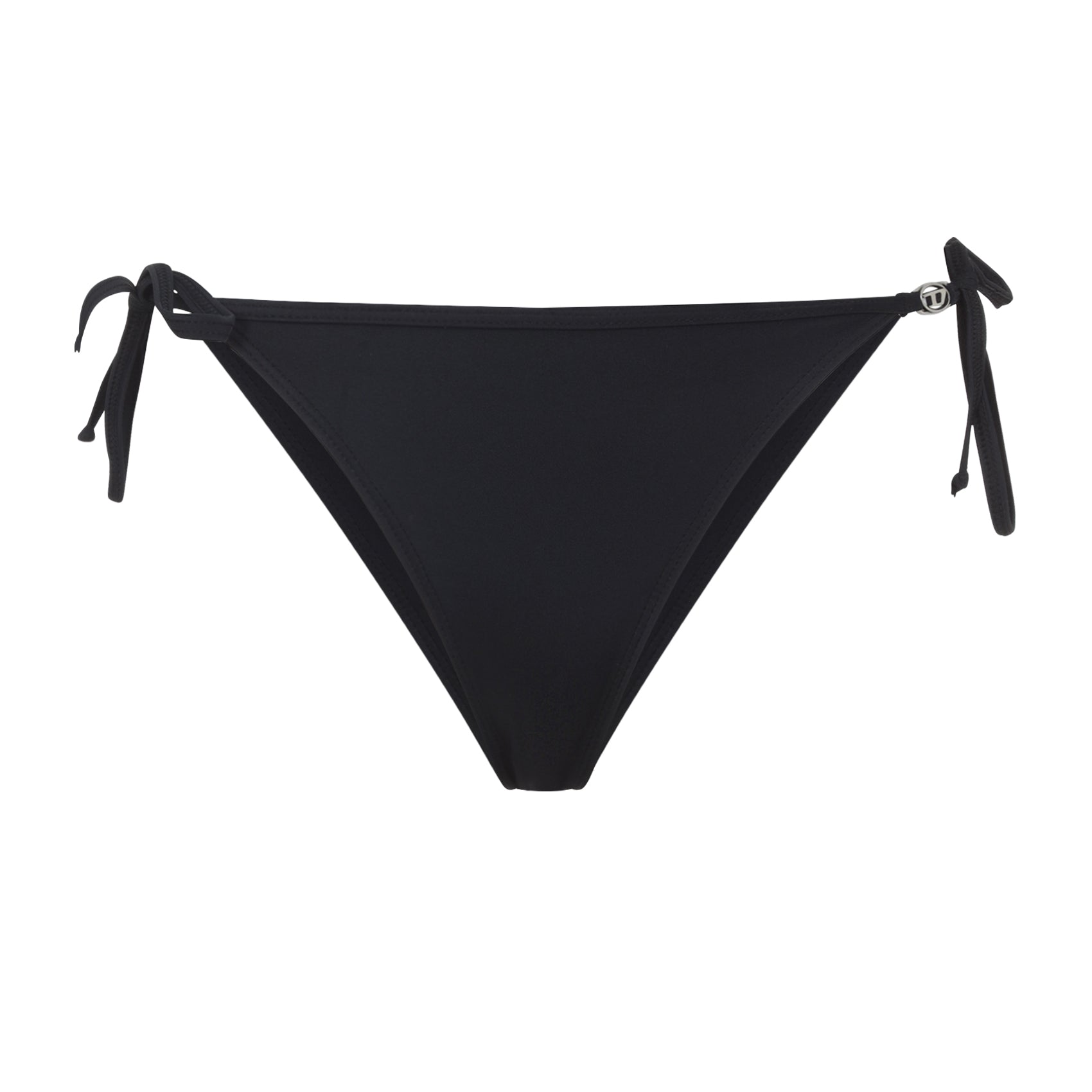 DIESEL BRIGITTES POLYESTER BIKINI BOTTOM. HIGH-CUT BRIEF CRAFTED FROM BLACK TECH FABRIC, FEATURING TWO SELF-TIES ON THE SIDES, A SILVER-TONED METAL D LOGO PLAQUE ON THE SIDE, AND A FULL LINING.
