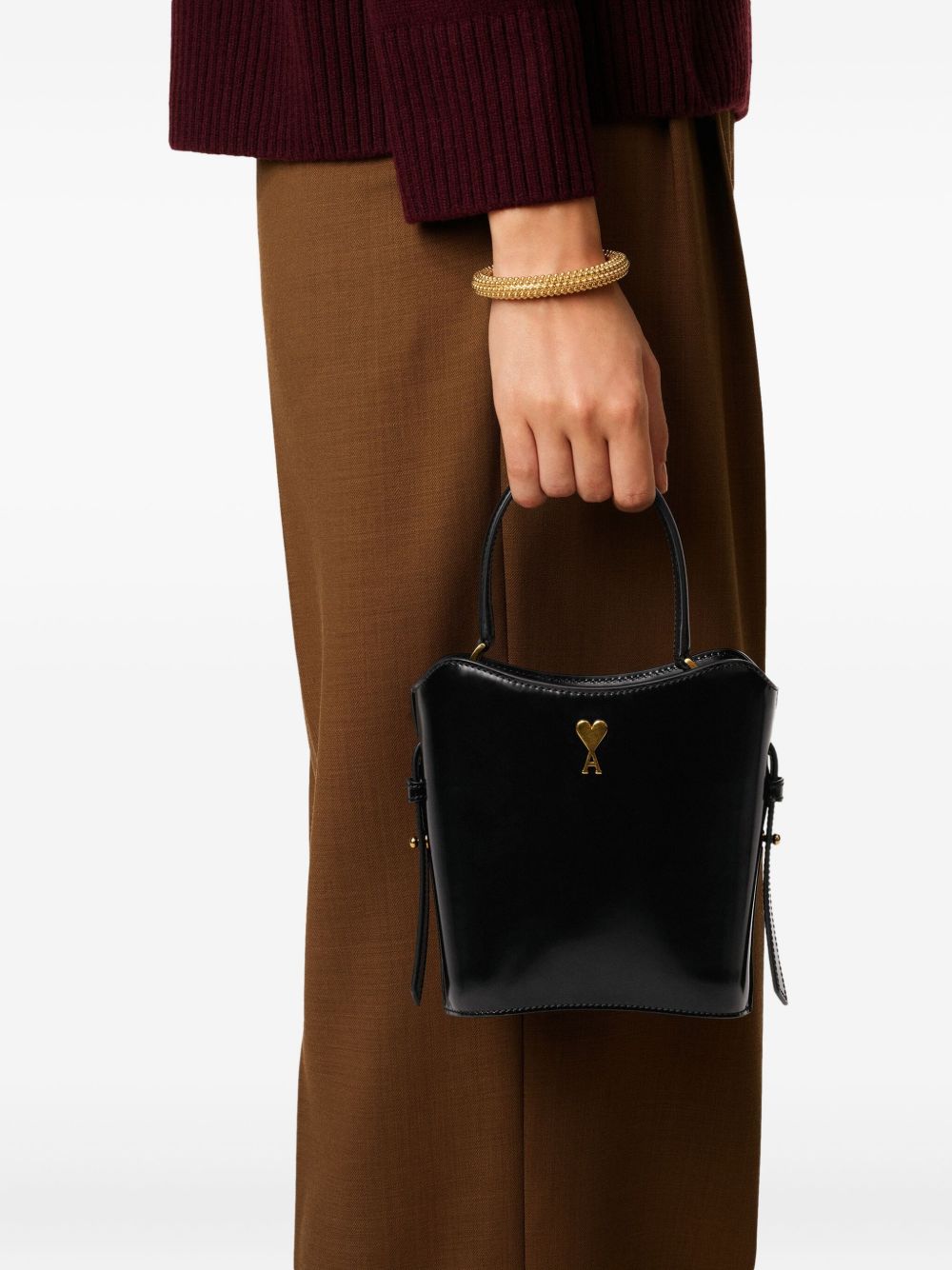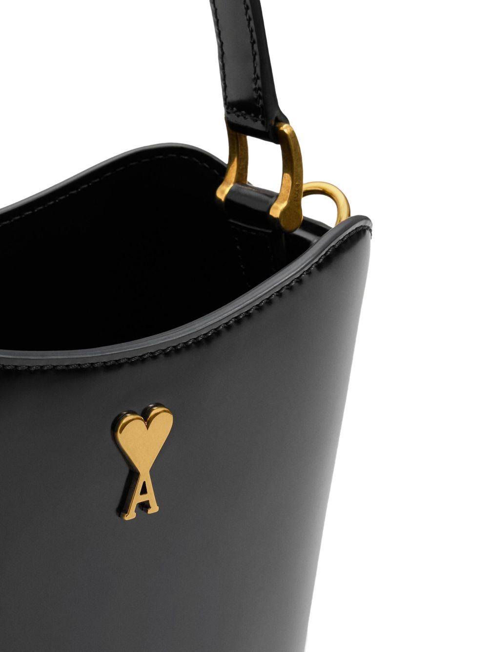 BLACK ADJUSTABLE LEATHER STRAP MAIN COMPARTMENT - DRAWSTRING POUCH AMI DE COEUR STUD