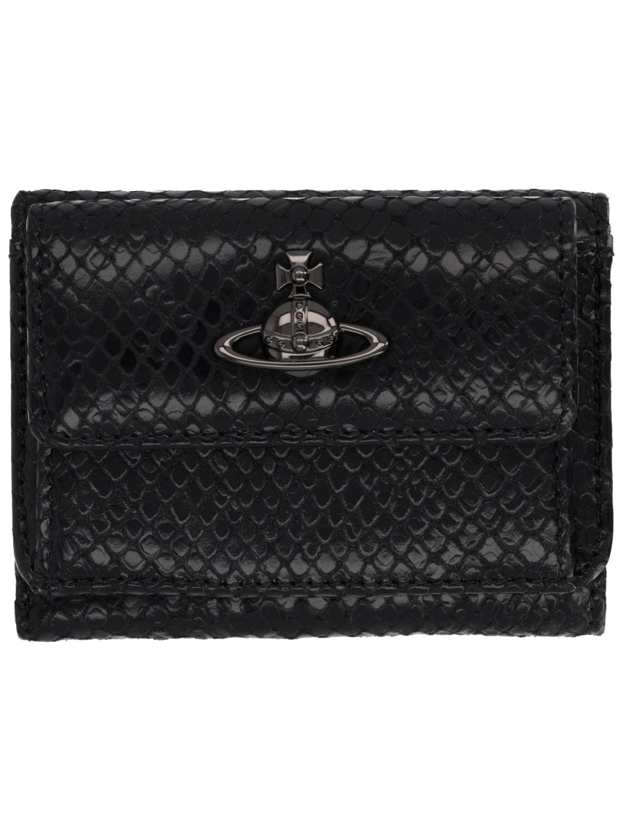 Elevate your everyday essentials with this luxurious Black Calf Leather Wallet from Vivienne Westwood. Crafted from 100% premium calf leather in Italy, this wallet features the brand's iconic orb hardware and a sophisticated snake-embossed texture that exudes timeless elegance.