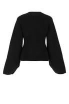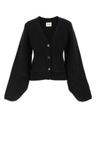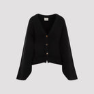 Elevate your wardrobe with the luxurious Scarlet Cardigan from Khaite. This sophisticated black cashmere piece features a classic button-front design and relaxed fit that effortlessly transitions from office to weekend.