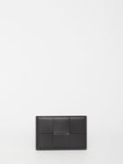 Cassette cardholder in black leather with Intrecciato pattern. Three card slots and one slip compartment. Any leather imperfections are not to be considered manufacturing defects, but a peculiarity of the material.