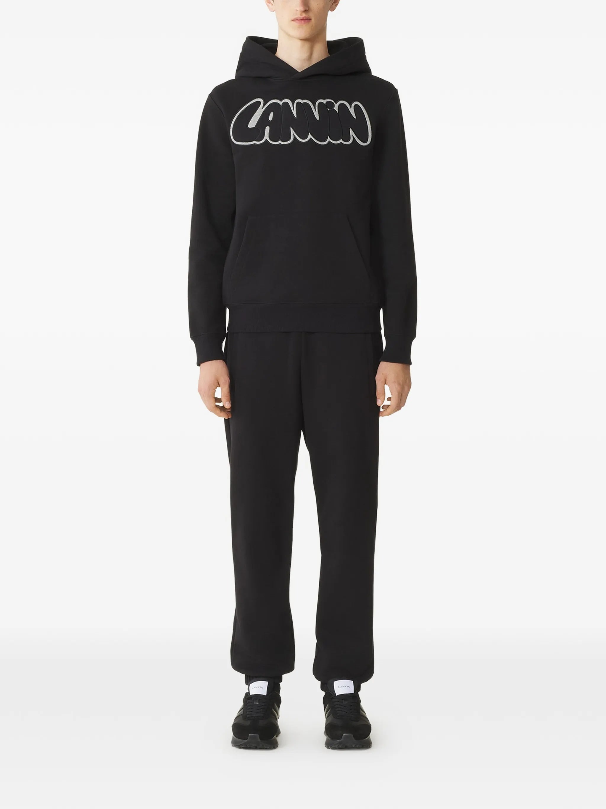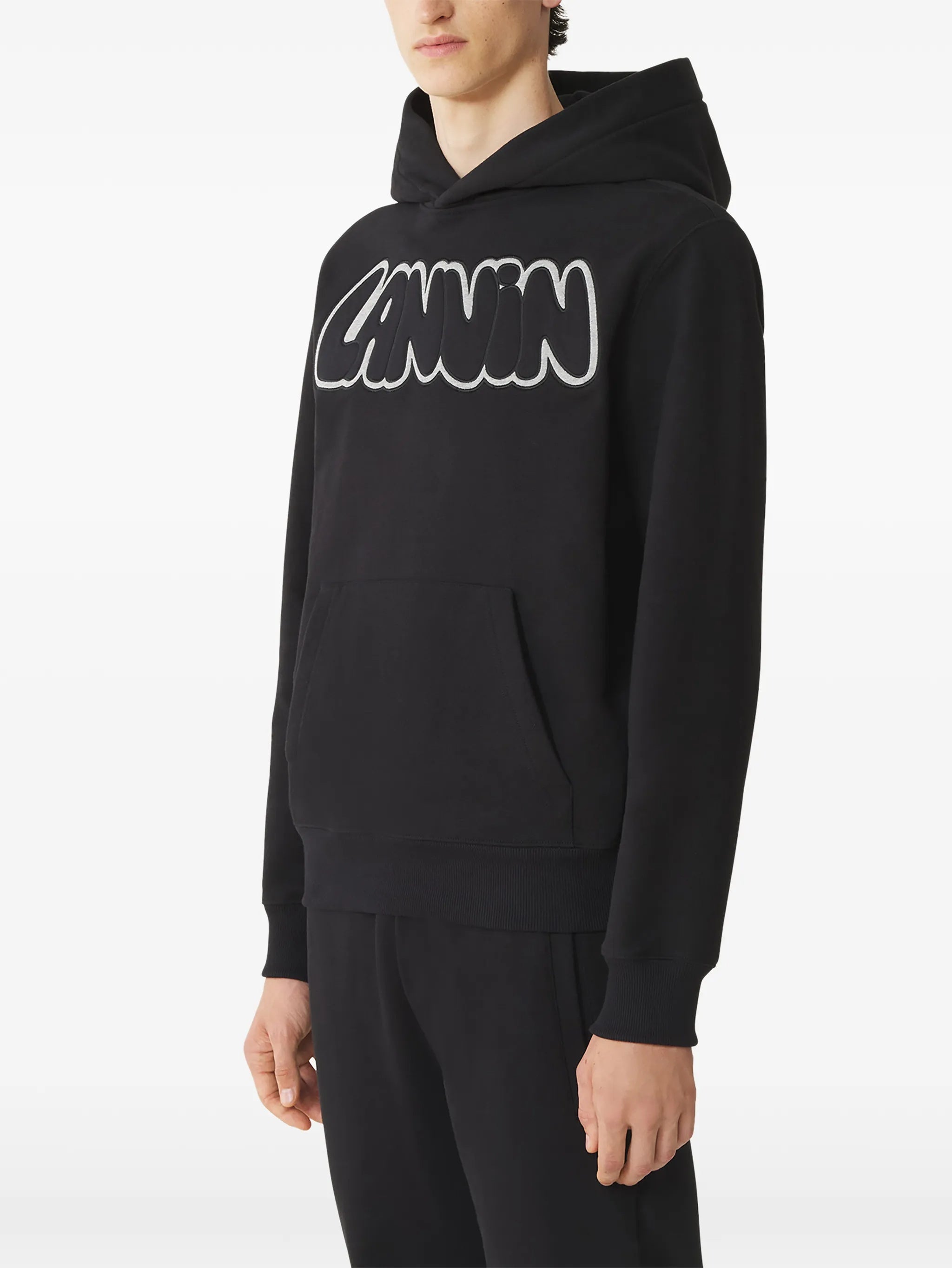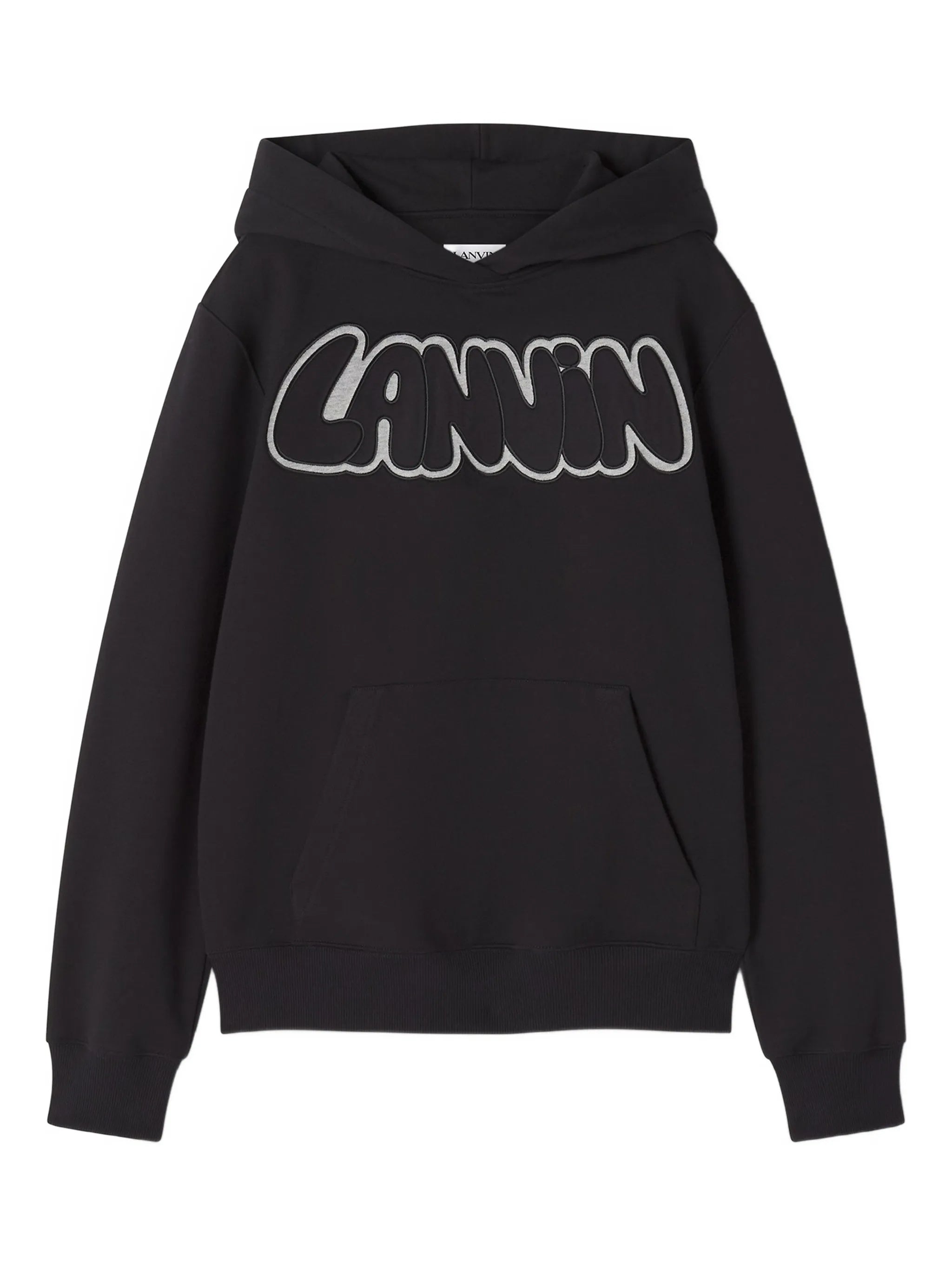 Elevate your casual wardrobe with this luxurious Black Cotton Embroidered Logo Hoodie from Lanvin. Crafted from 100% premium cotton, this pullover hoodie features the iconic Lanvin logo in striking embroidered detail across the chest, adding a designer touch to your off-duty look.