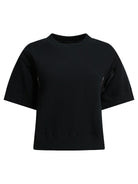 Elevate your everyday essentials with this black cotton-polyester t-shirt from Sacai. Crafted from a comfortable blend of cotton and polyester, this piece features a modern cropped silhouette with a distinctive utility pocket detail on the sleeve, showcasing Sacai's signature innovative design approach.