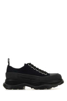 Elevate your sneaker game with these striking black cotton sneakers from Alexander McQueen. Featuring the brand's signature chunky platform sole and classic lace-up design, these low-top sneakers seamlessly blend luxury with urban edge.