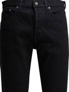 Elevate your everyday wardrobe with these sleek black cotton spandex trousers from Golden Goose. Crafted from a comfortable cotton-spandex blend, these trousers offer both style and flexibility for all-day wear. The classic straight-leg silhouette and timeless black hue make them incredibly versatile—perfect for pairing with everything from crisp button-downs for the office to casual tees for weekend outings. The subtle stretch ensures a comfortable, flattering fit that moves with you. These trousers are a sophisticated essential that seamlessly transitions from work to play, making them an indispensable addition to any modern man's wardrobe.