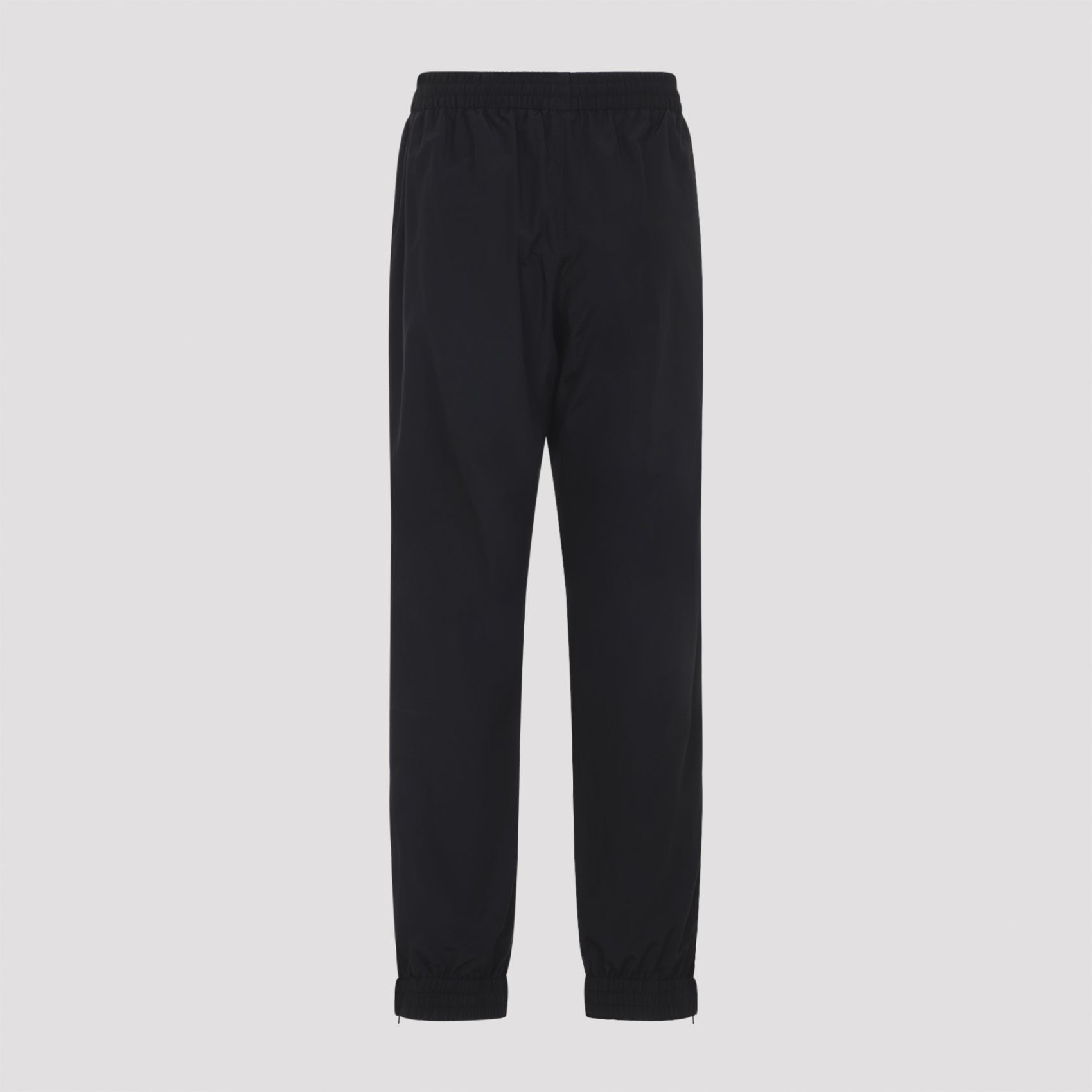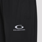 BALENCIAGA BLACK COTTON TRACK PANTS. CRAFTED FROM BLACK COTTON BLEND, FEATURING AN ELASTICATED WAIST, SIDE POCKETS, CONTRASTING WHITE LOGO EMBROIDERY, AND ELASTIC CUFFS.