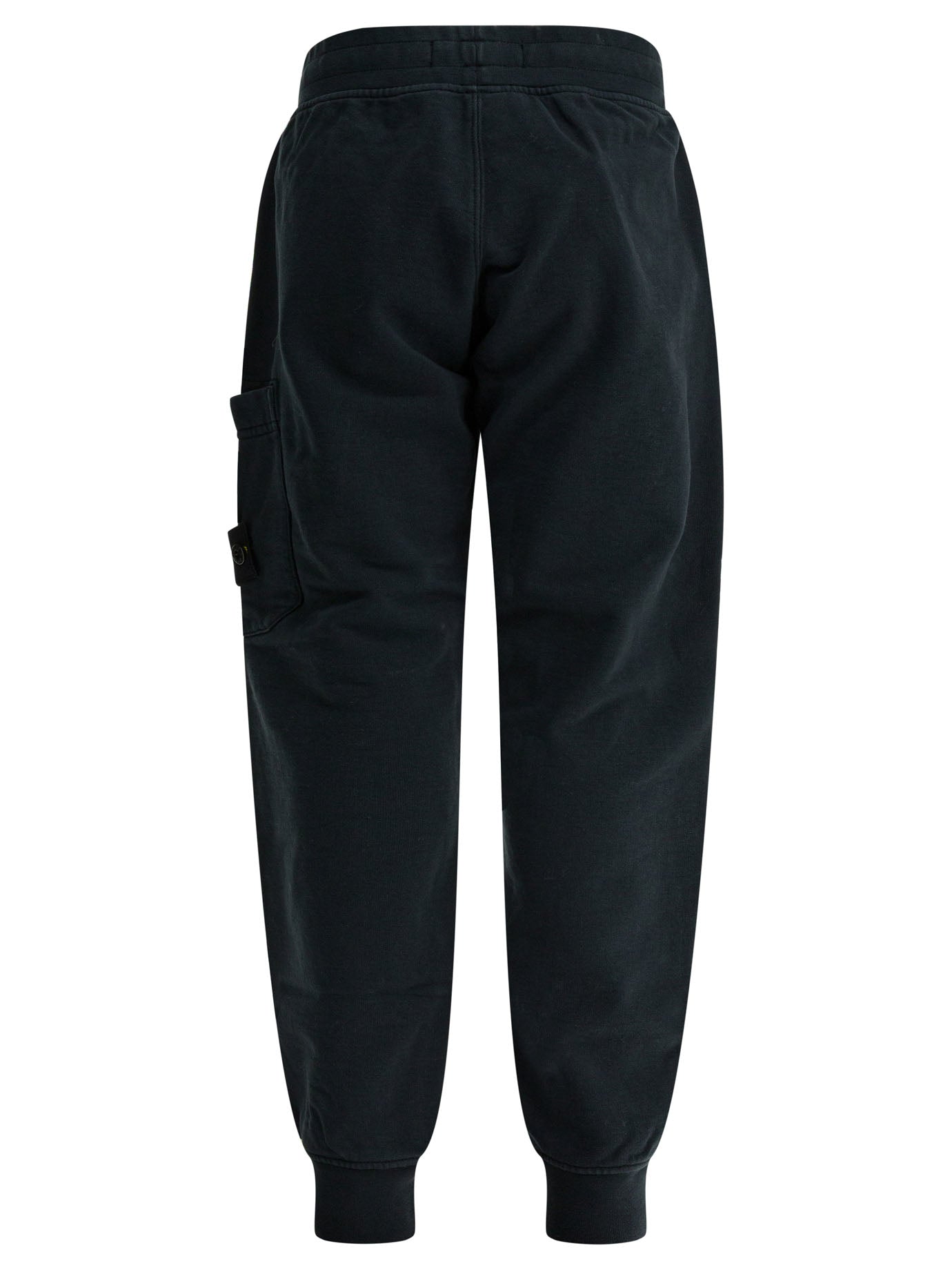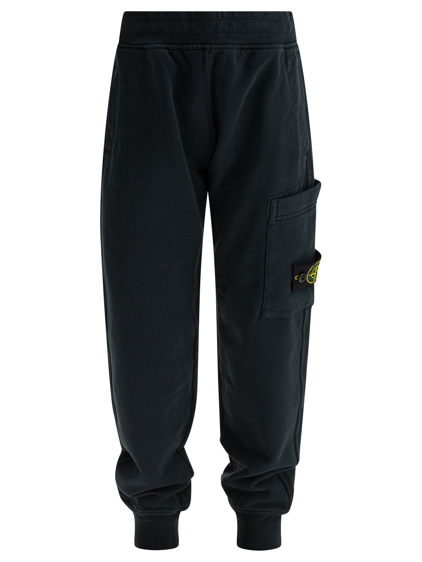 Elevate everyday comfort with these black cotton trousers from STONE ISLAND KIDS. Crafted from premium cotton, these jogger-style pants feature an elastic waistband, tapered legs with ribbed cuffs, and a distinctive cargo pocket detail with the iconic Stone Island badge.