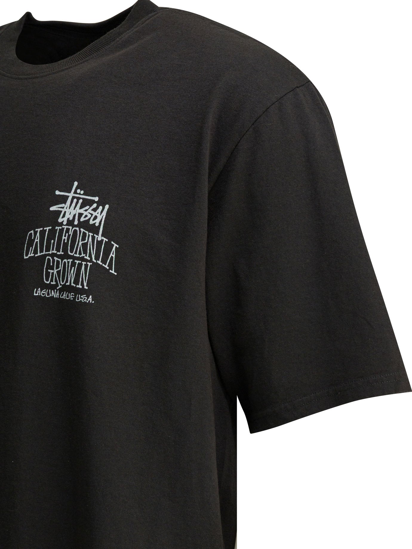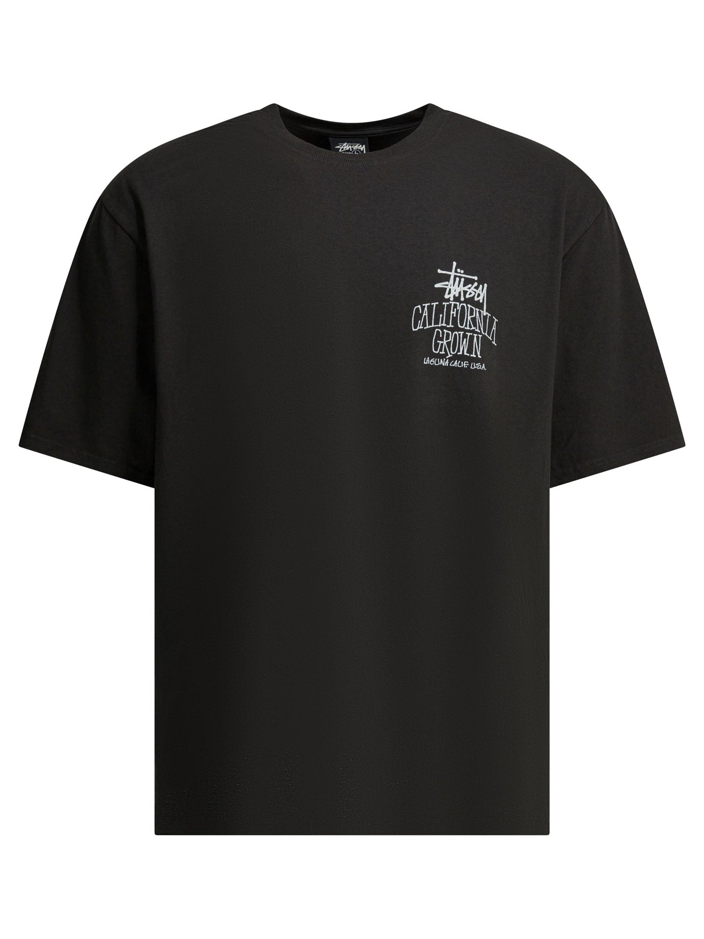 Elevate your streetwear collection with this classic black cotton t-shirt from Stussy. Featuring the iconic Stussy logo graphics on the chest, this crew neck tee offers a relaxed, comfortable fit perfect for everyday wear.