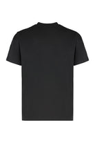 BLACK COTTON T-SHIRT WITH CONTRASTING PRINT ON THE FRONT.