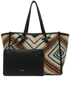 The striking chevron and diamond motif adds a bohemian-chic element that effortlessly transitions from weekend errands to beach getaways. With its structured silhouette and generous interior, this versatile tote is perfect for carrying all your essentials in style.