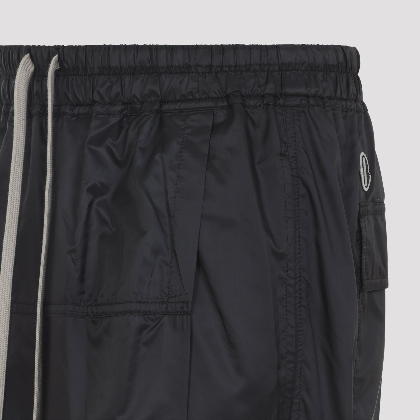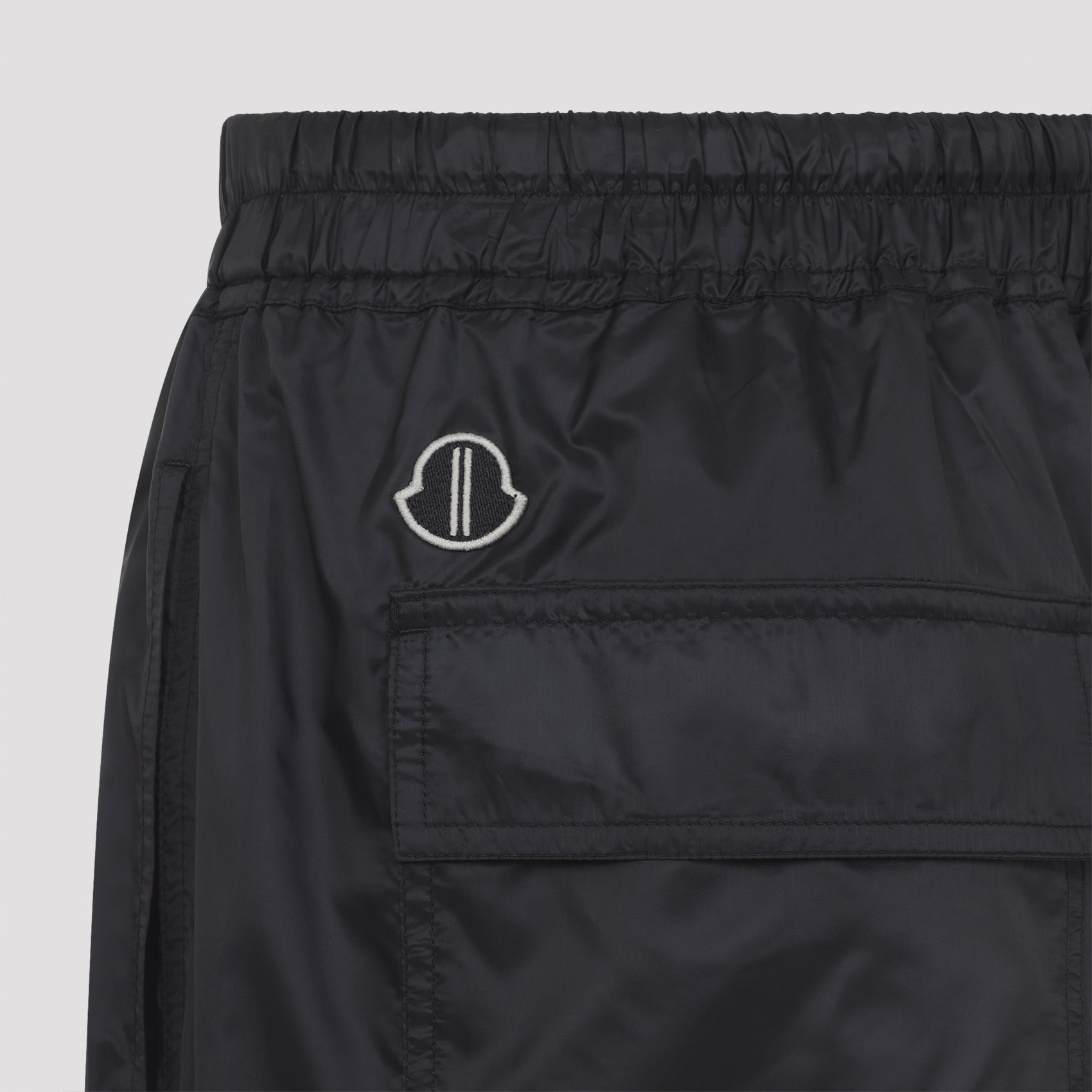 Introducing the MONCLER X RICK OWENS Black Kiltshorts, a bold fusion of avant-garde design and technical innovation. Crafted from black recycled ultra-lightweight polyester, these knee-length shorts feature a regular fit with an elasticized waistband and drawstring for ultimate comfort and adjustability.