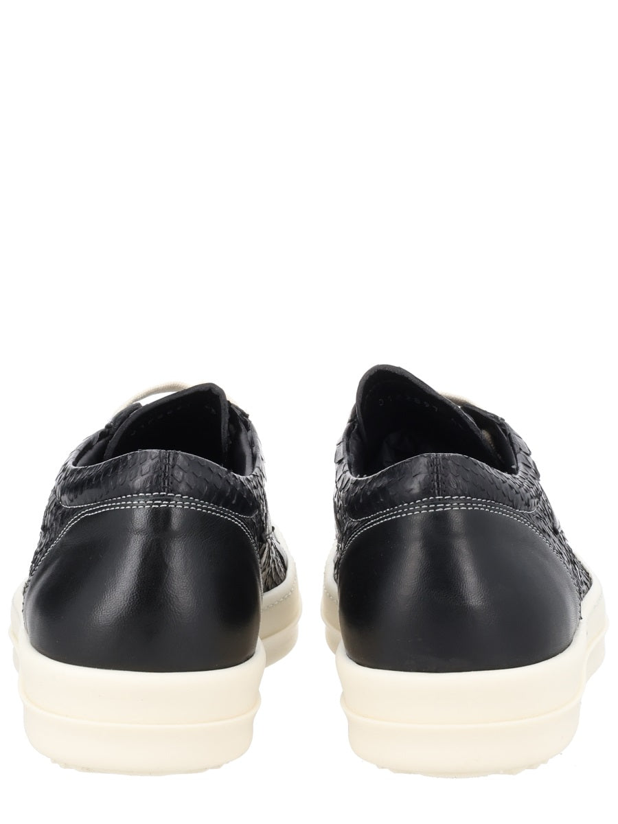 Elevate your sneaker game with these striking Rick Owens Black Lamb Leather Python Sneakers. Crafted in Italy from premium 100% lamb leather with distinctive python leather details, these low-top sneakers embody the designer's signature avant-garde aesthetic with a luxurious edge.