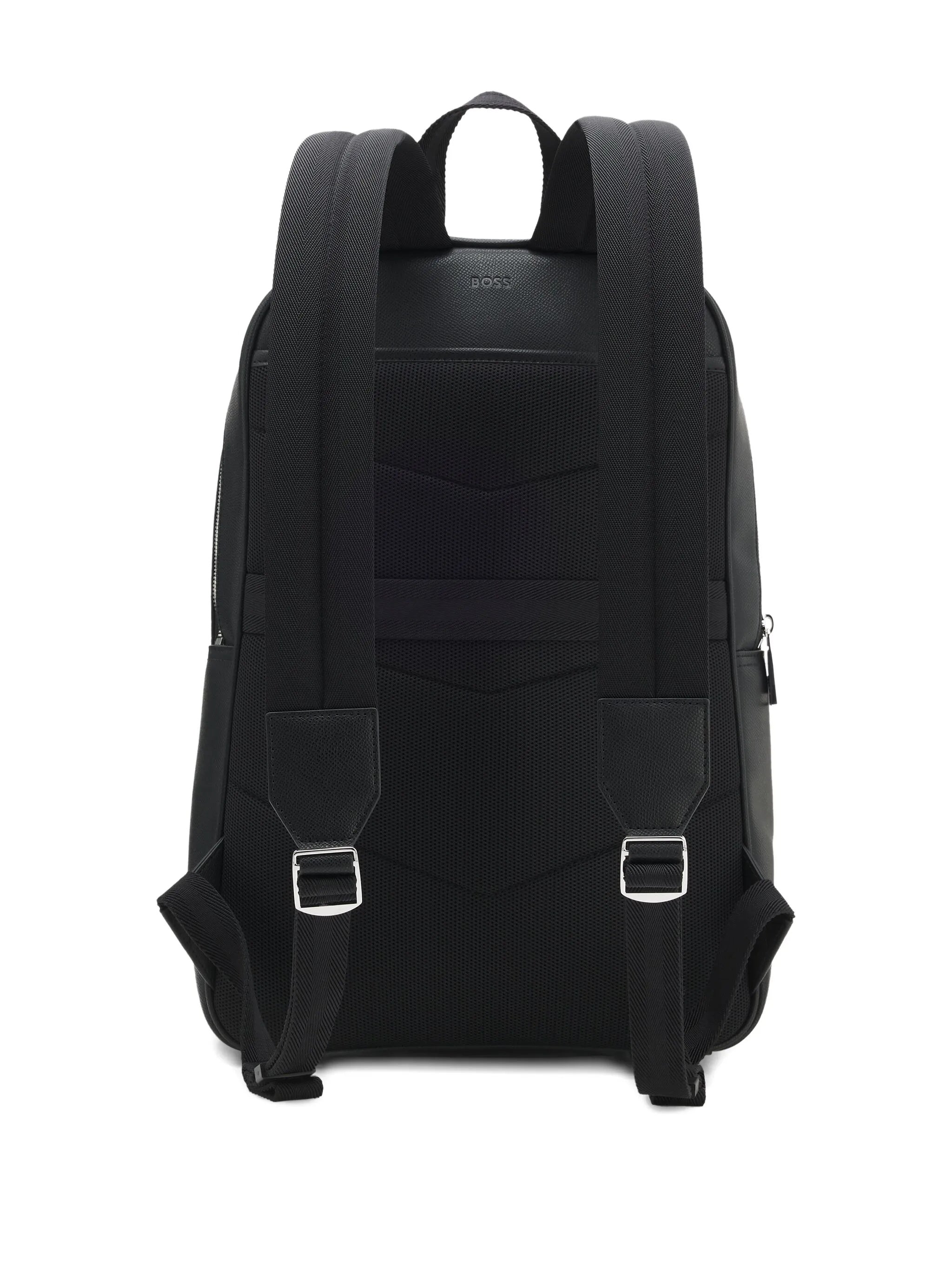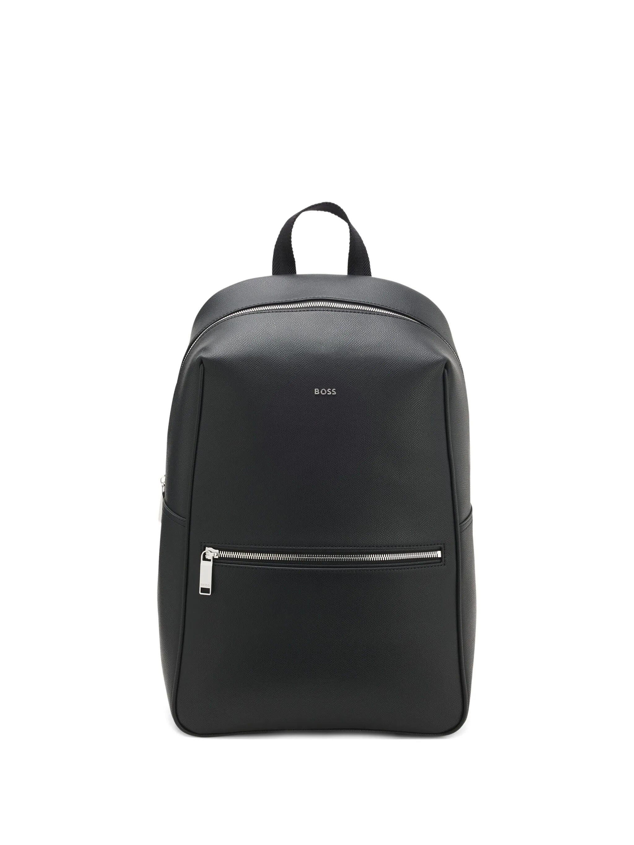 Elevate your everyday carry with this sophisticated black leather backpack from HUGO BOSS. Crafted from premium leather, this sleek design features a spacious main compartment and a convenient front zipper pocket for easy access to essentials.