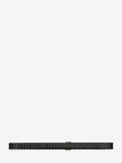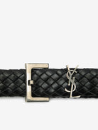 Elevate your wardrobe with this sophisticated Black Leather Cassandre Belt from Saint Laurent. Crafted from premium woven black leather, this luxurious accessory features the iconic YSL Cassandre logo hardware in polished silver-tone metal. The braided construction adds texture and visual interest while maintaining a sleek, refined aesthetic. Perfect for cinching blazers, defining your waist over dresses, or adding a designer touch to high-waisted denim. This versatile belt effortlessly transitions from day to evening, making it an essential addition to any fashion-forward wardrobe.