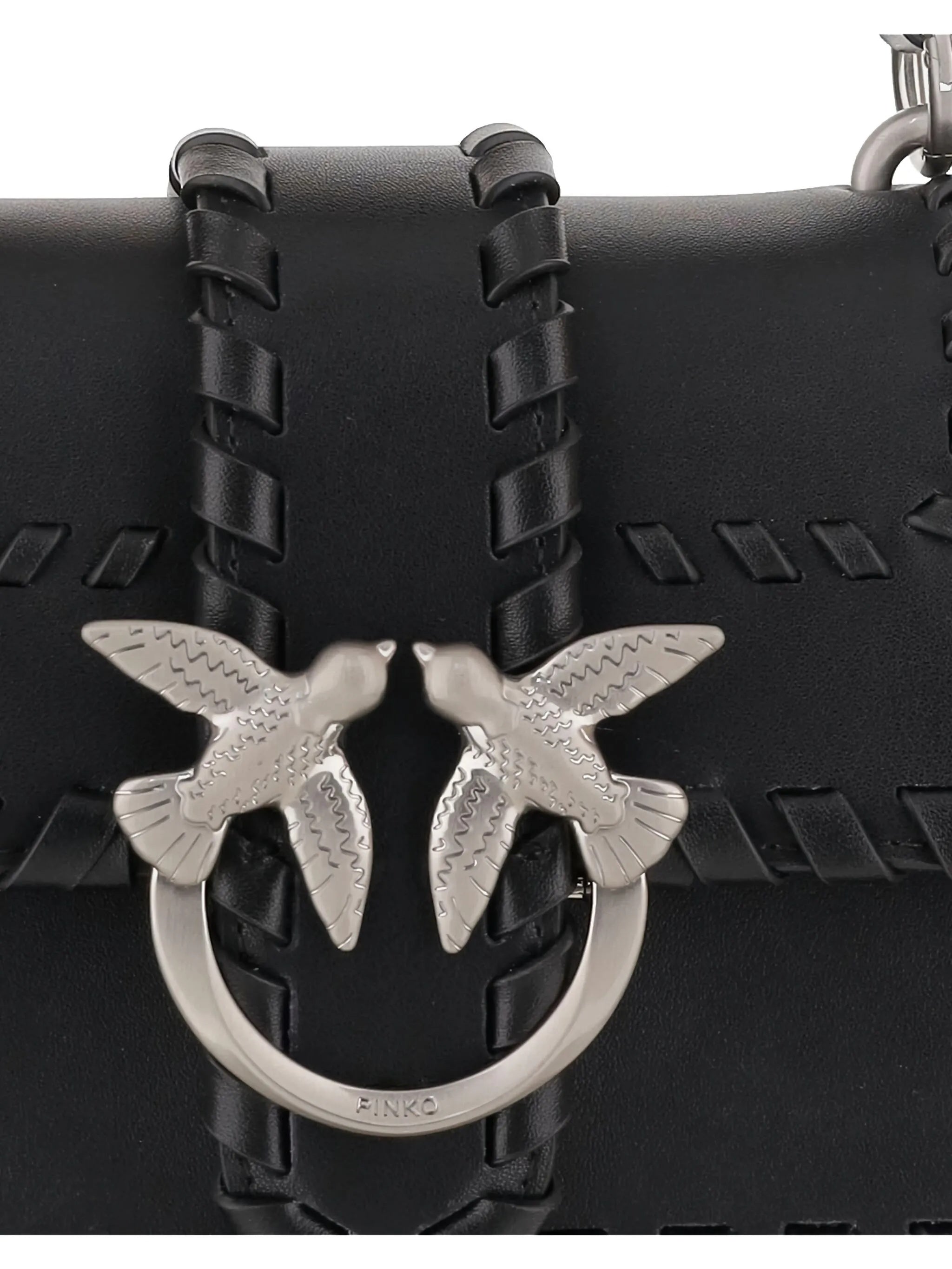 Introducing the Black Leather Love One Mini by Pinko, a stunning statement piece that combines Italian craftsmanship with iconic design.