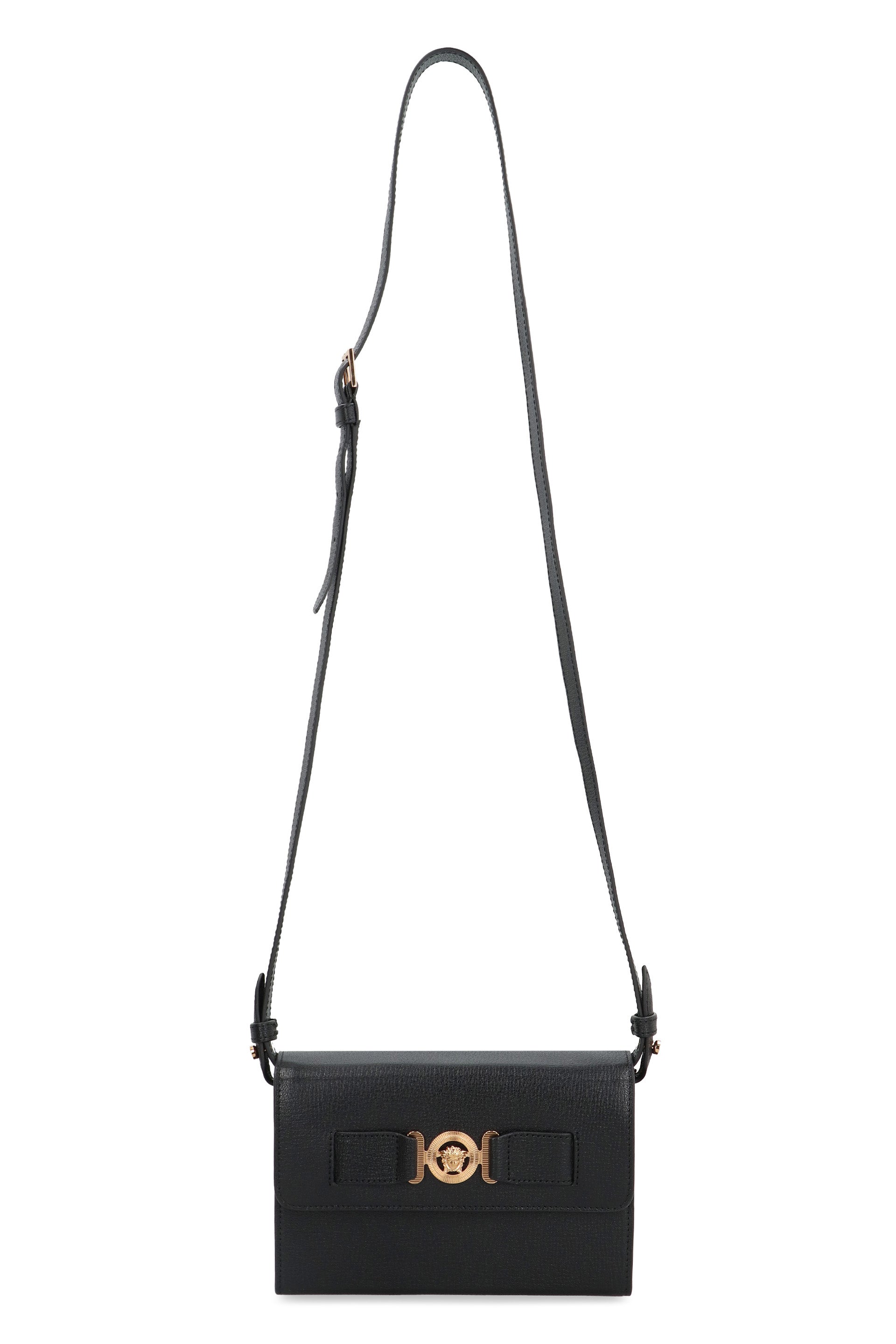 BLACK LEATHER MEDUSA BIGGIE CROSSBODY BAG