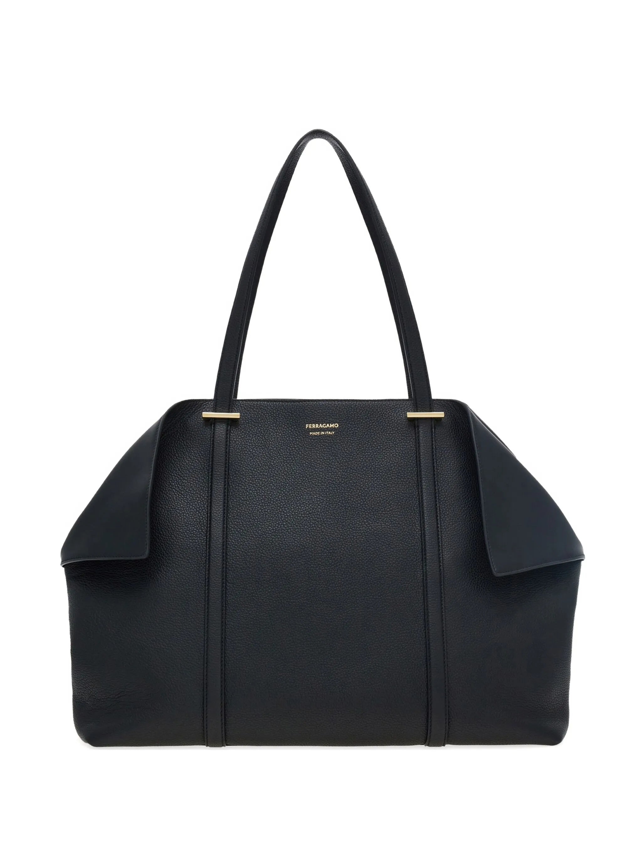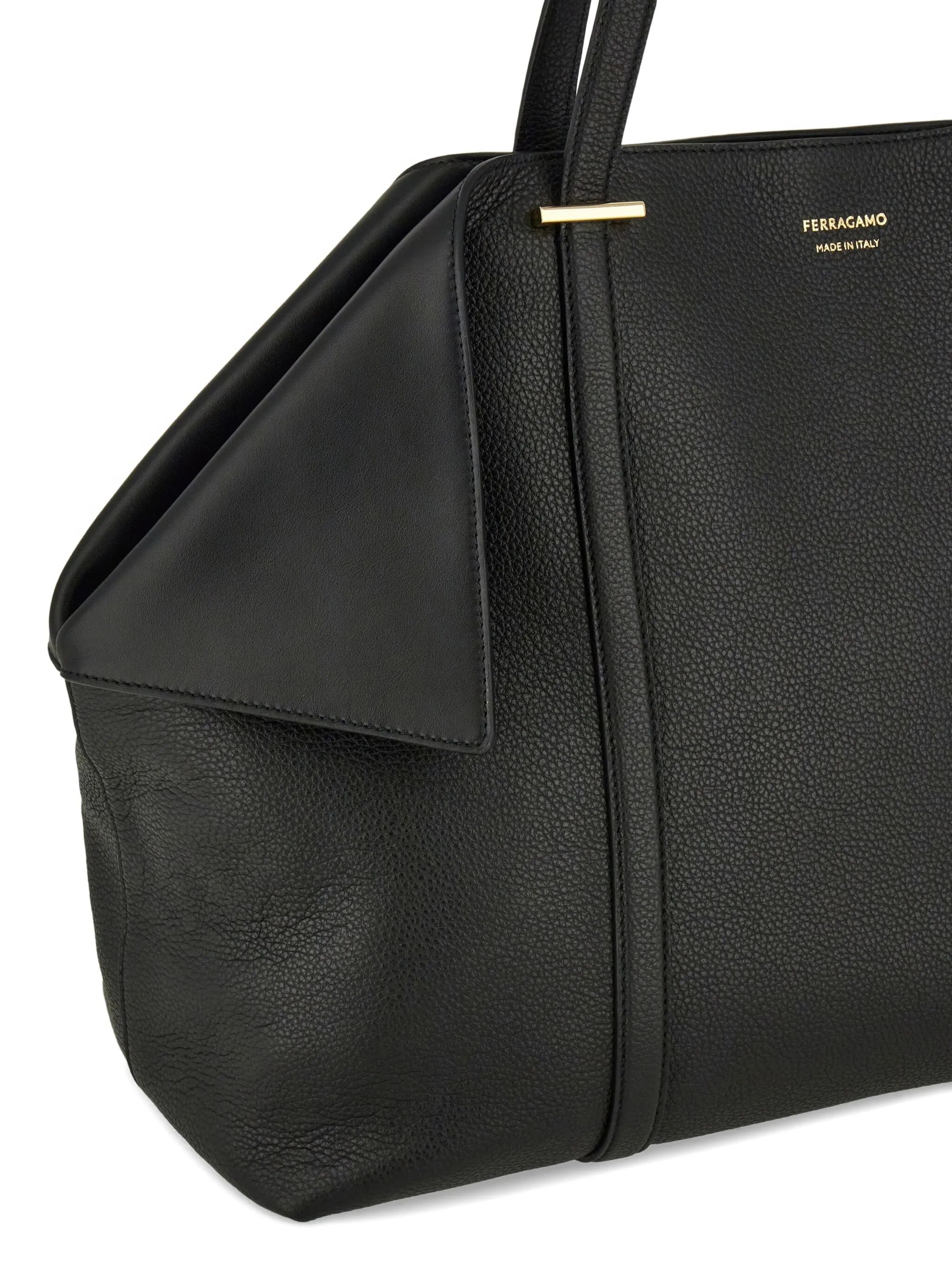 Elevate your everyday style with this stunning black leather handbag from Ferragamo. This sophisticated shoulder bag features a distinctive structured silhouette with elegant angular sides that create a modern, architectural aesthetic.